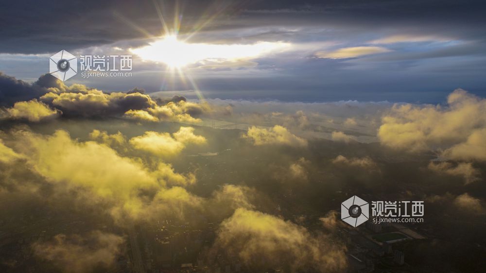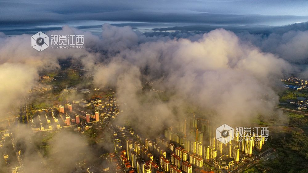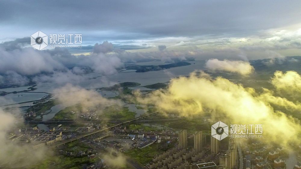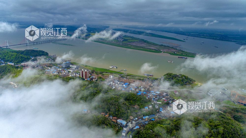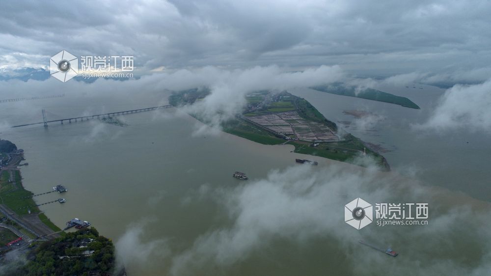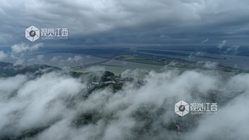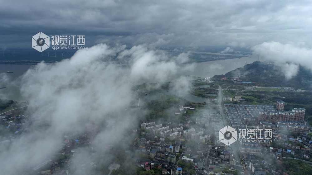 3月25日,江西省湖口县早晚均出现平流雾,山江湖城在云雾的笼罩下,若隐若现,蔚为壮观,美不胜收,令人心旷神怡。