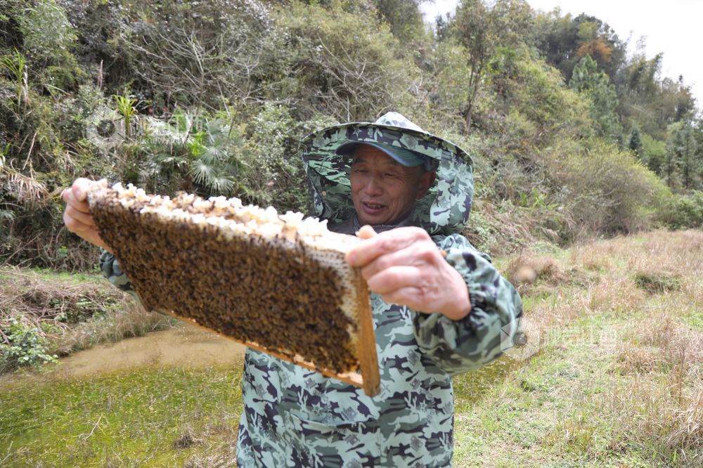 2018年,太沙村利用地处深山、蜜源丰富的独特条件成立合作社,打造了中蜂养殖基地。100箱蜜蜂去年产出蜂蜜2000多斤,一箱蜂蜜近千元的收入,给这个偏僻山村带来了致富的好“钱”景。