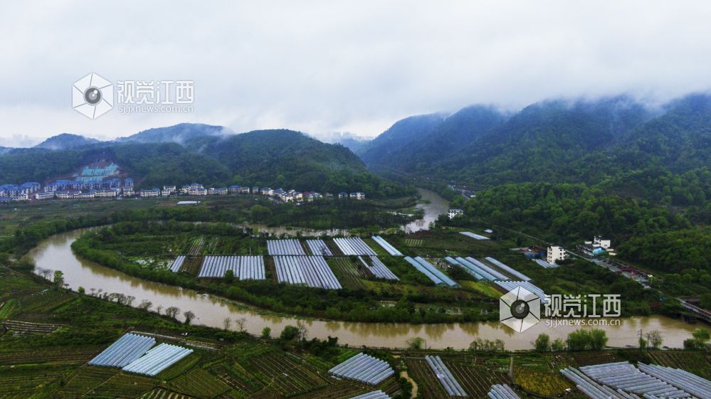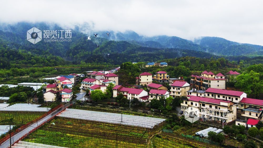 3月31日上午,雨停后的江西省新余市仙女湖区仰天岗办事处湖陂村云雾缭绕、鸟儿飞翔,与房屋、田园、小桥、流水交相辉映,形成了一幅美丽的生态画卷,犹如世外桃源。