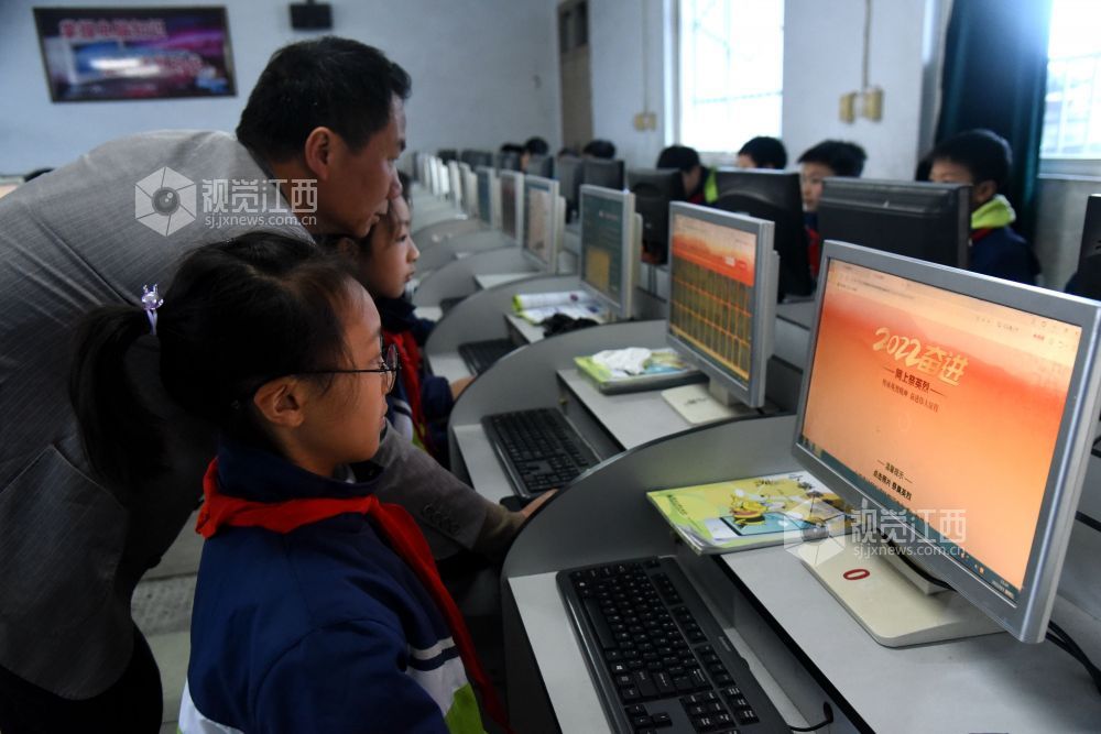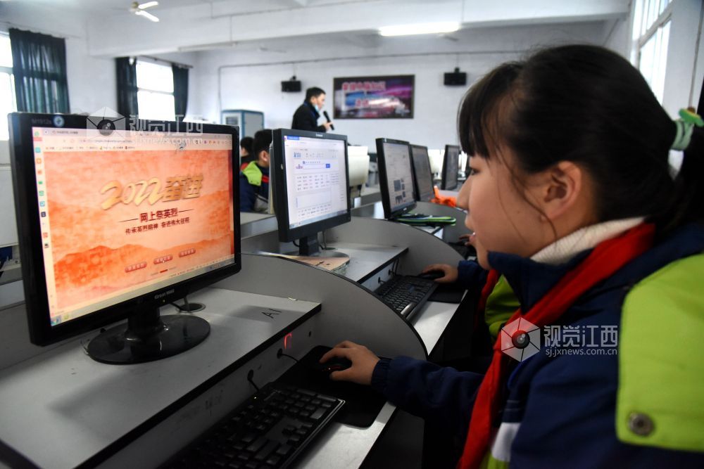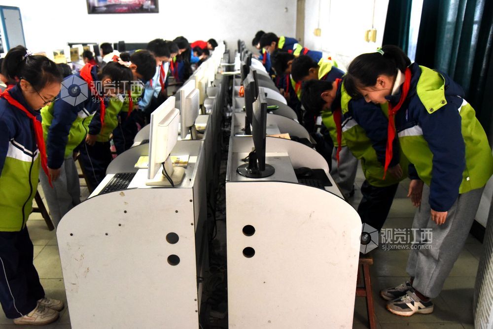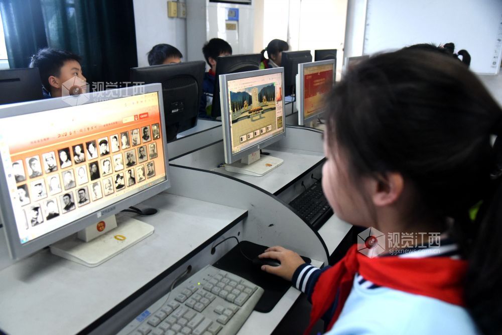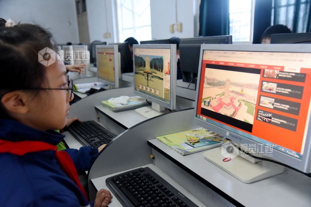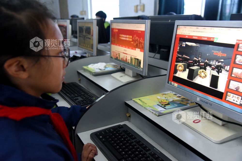 2022年4月1日,在江西省抚州市南丰县教师进修学校附属小学多媒体教室,五年级学生在开展“网上祭英烈”活动,旨在引导广大未成年人坚定理想信念,传承优良传统,厚植红色基因,激发爱国情感。