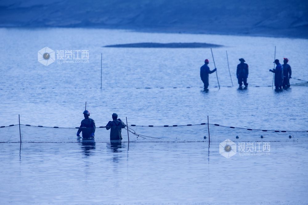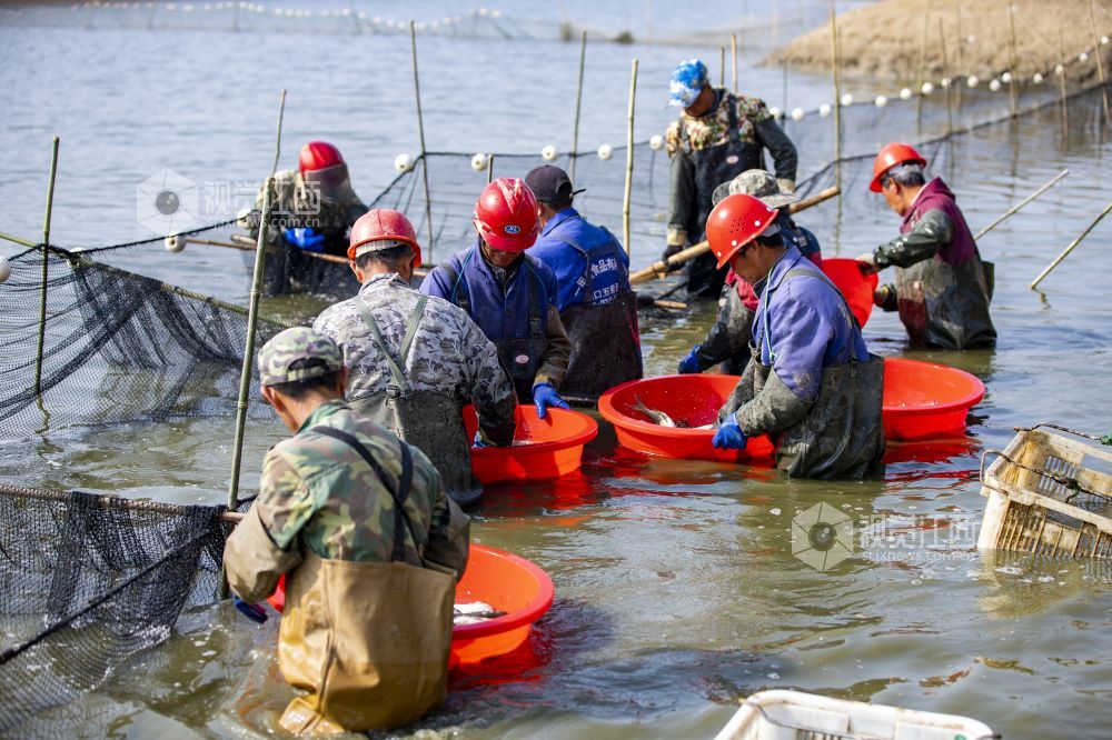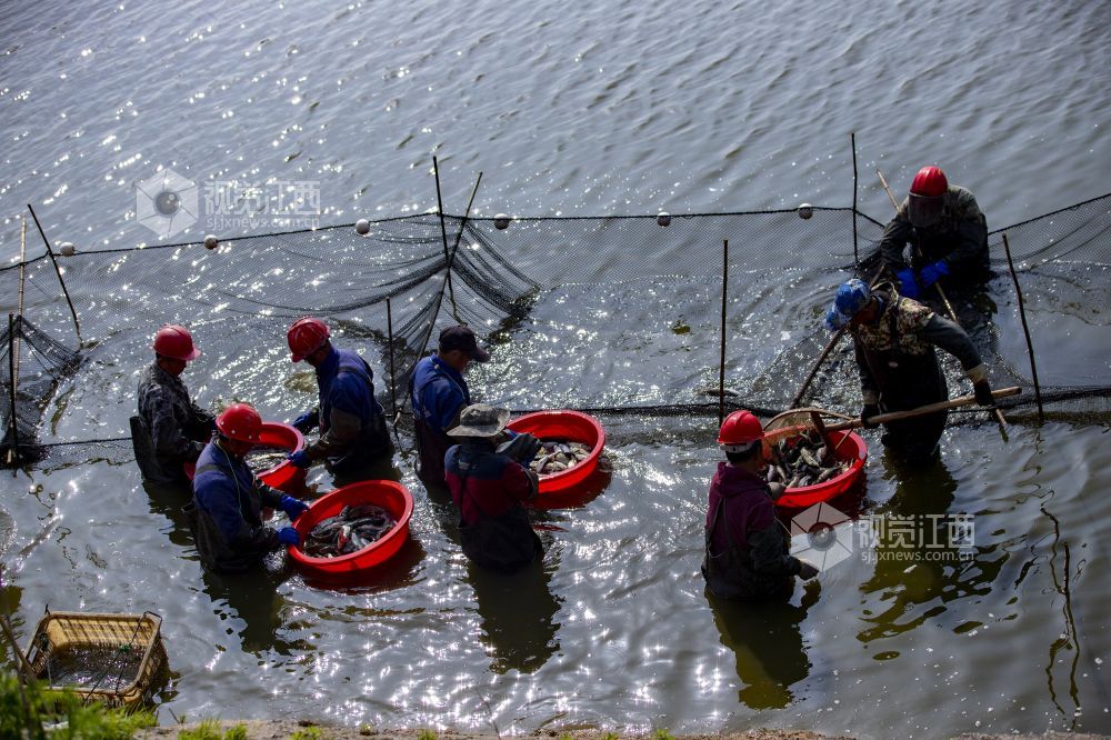 2022年4月3日,江西省九江市湖口县苏官渡鱼苗养殖基地正在起网收苗。近年来,当地因地制宜,坚持用好水养好鱼,大力探索反季节和长年供应养殖模式,树立特色养殖品牌,销售市场一路走俏,效益逐年攀升。