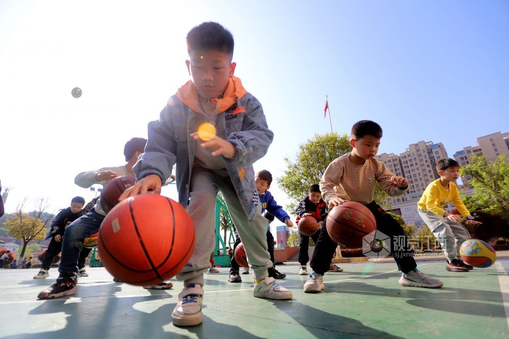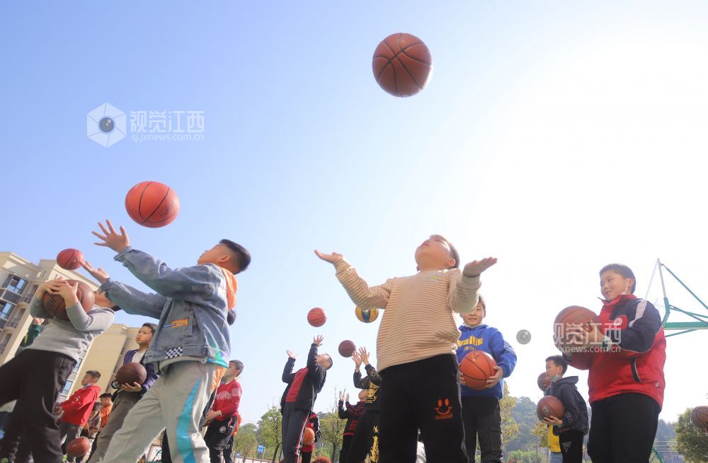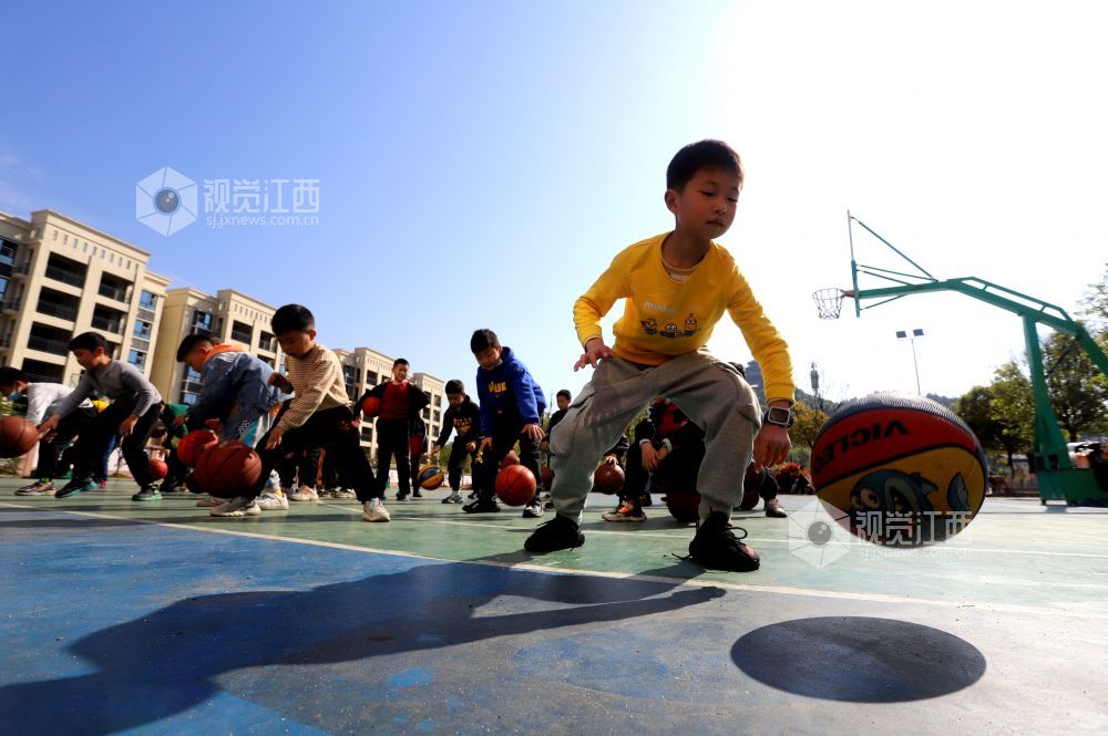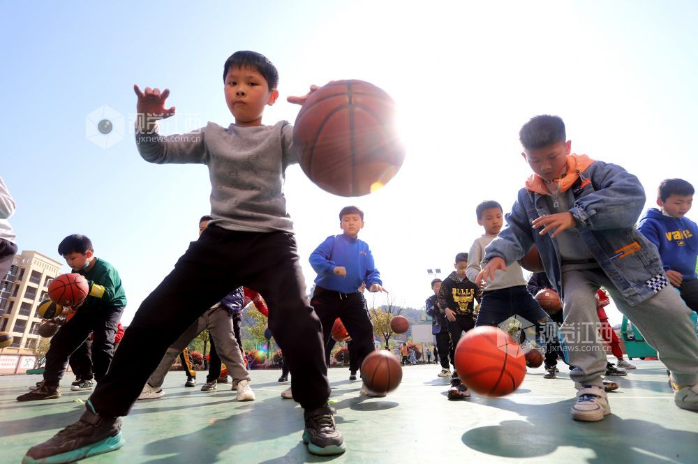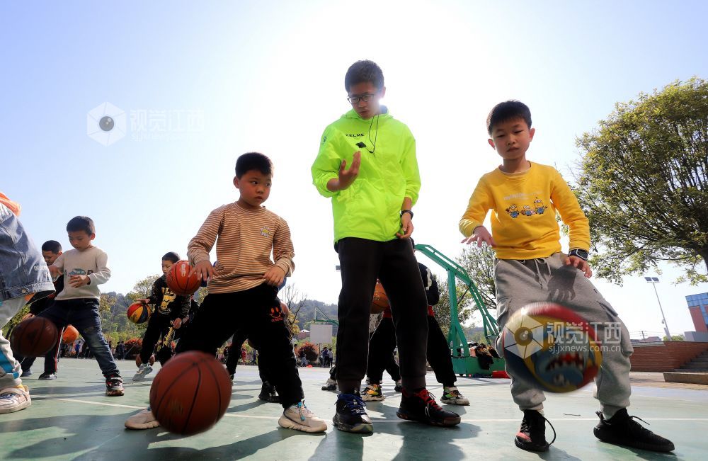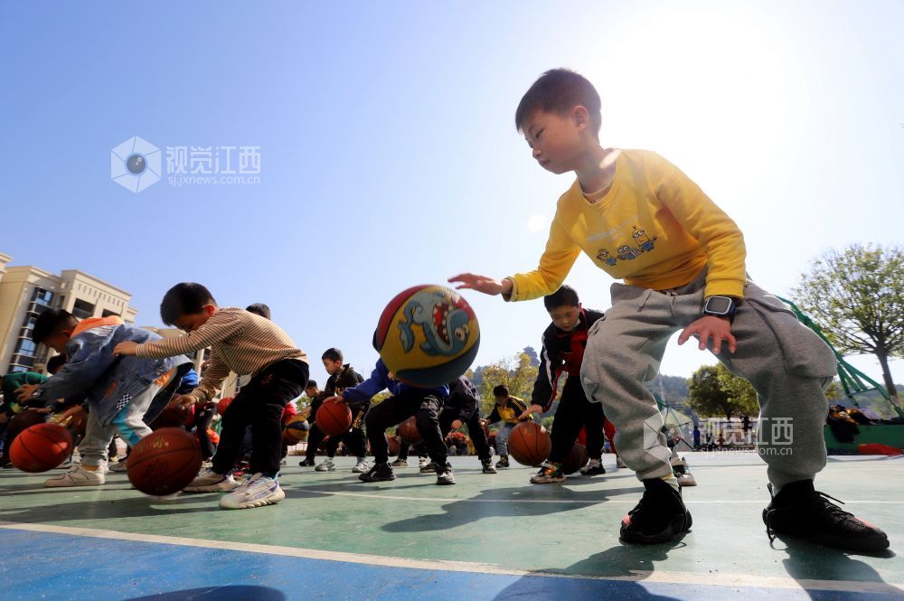 2022年4月4日,江西省吉安市安福县平都第二小学的孩子们在练习篮球。清明节假期,安福县平都镇各社区与中小学校联手开展丰富多彩的文体社团活动,吸引了众多孩子们参加,孩子们在运动中乐享假期生活。