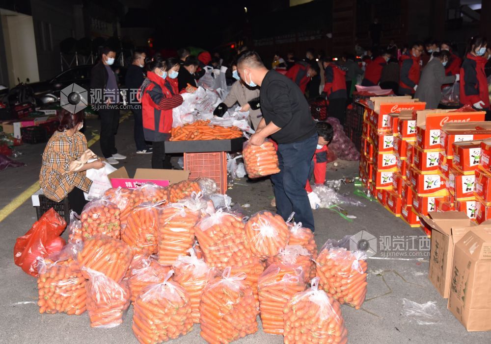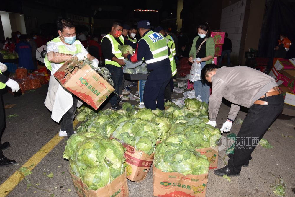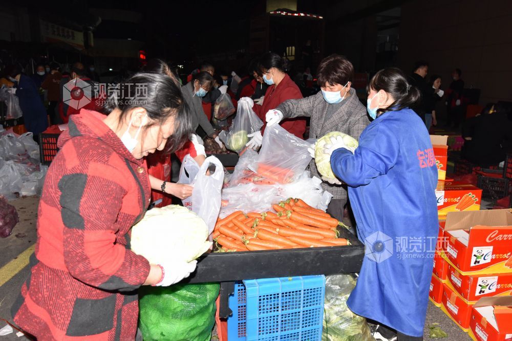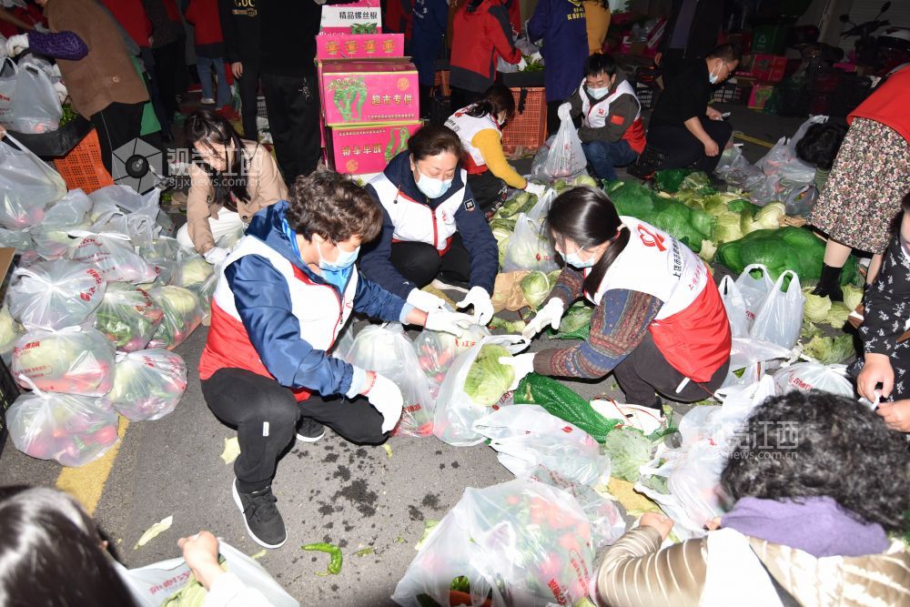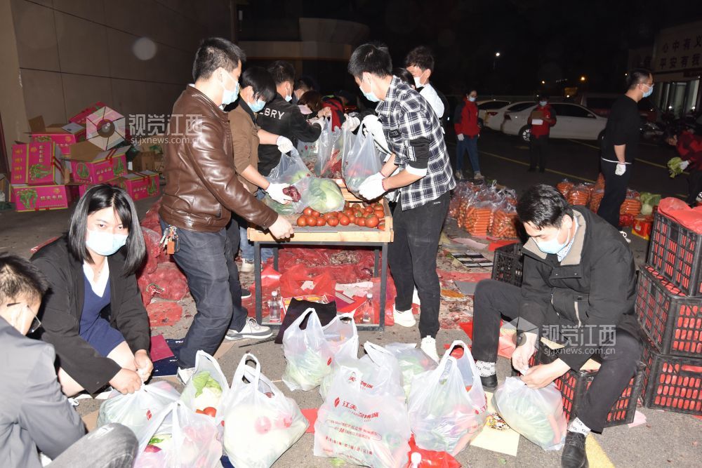 4月4日晚21时许,上饶市江天农博城接到上饶市政府紧急调拨通知,急需从江天农博城市场、铅山万亩蔬菜基地,调度采摘各类蔬菜送往婺源抗疫第一线。当晚22时,百余人连夜分拣近5000份蔬菜,每份蔬菜都有土豆、萝卜、青菜、西红柿 辣椒等五个品种,分拣完毕后紧急驰援婺源。