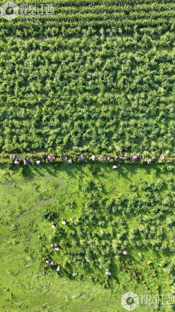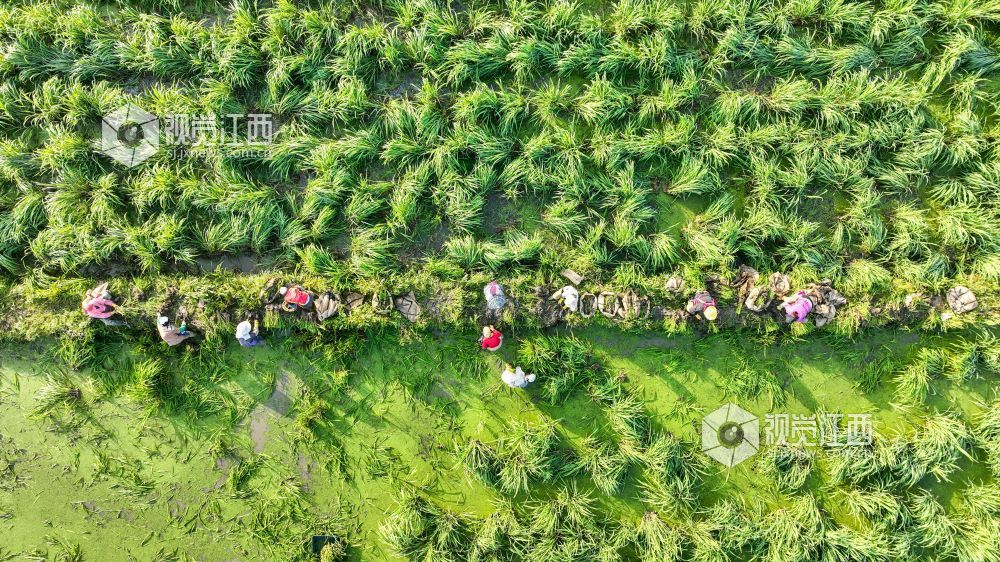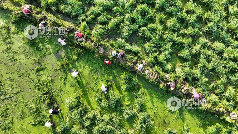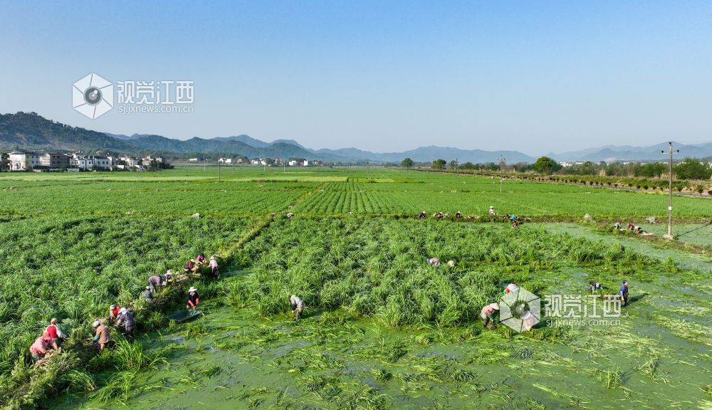 2022年4月7日,村民在江西省瑞昌市范镇东山村茭白基地选苗。