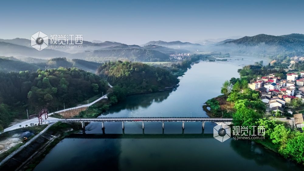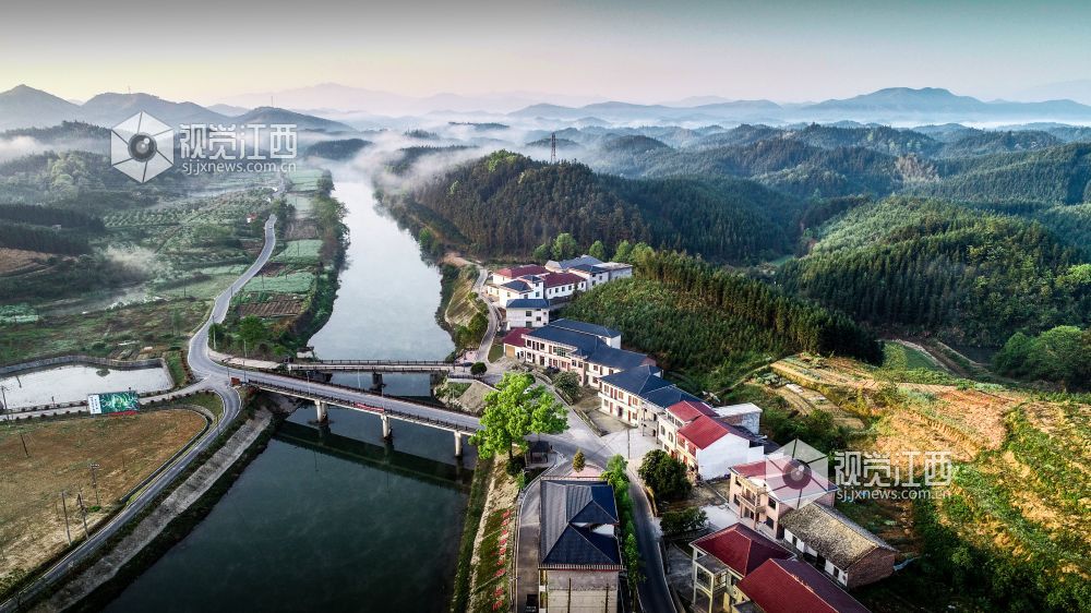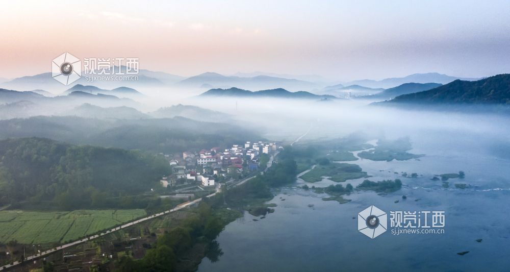 近日,江西省分宜县洋江镇以多云到晴的天气为主,早晚温差大。清晨,杨溪河畔远山云雾缥缈,河面上飘动着一层薄薄的雾气,如梦如幻如诗如画。