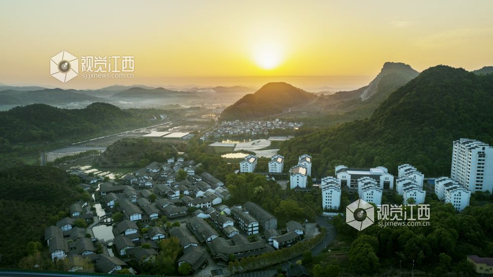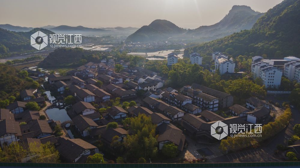 4月9日,江西省新余市仙女湖区欧里镇昌坊古村在航拍镜头下,街道将各色古建筑串联成线,成为江南水乡大山里的一幅美丽图画。