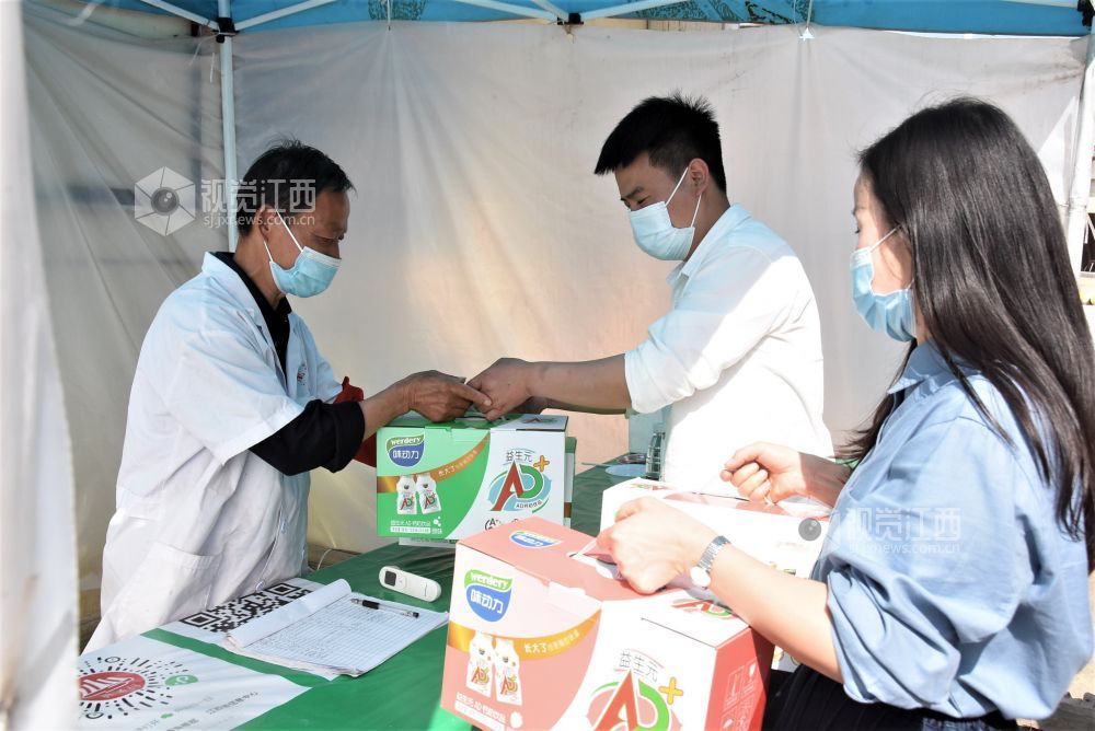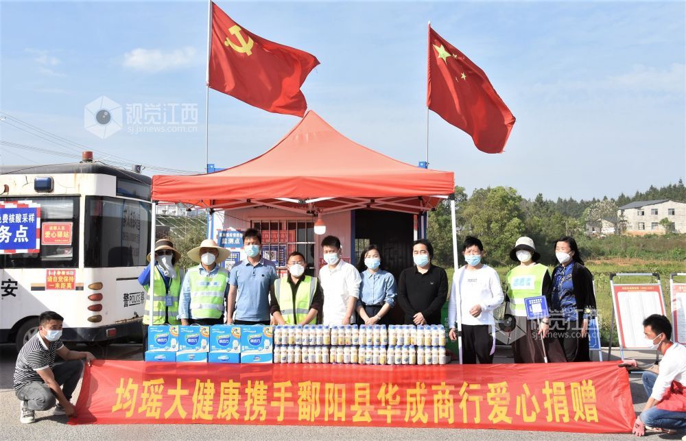 2022年4月9日,江西省鄱阳县第八届鄱阳好人、爱心企业鄱阳华成商行总经理金贤华夫妇会同“上饶好人”朱冬生、“鄱阳好人”邓武岭、朱贵春一行驱车前往该县凰岗乡、古县渡镇、县交警大队、饶州街道灵芝门社区等向奋战在抗疫防控一线的人民交通警察、医院医护值勤人员、高速路口执勤点、社区、乡镇等送去价值十四万元的饮料奶制品,同心协力,共同防控抗击“疫”情出份力。