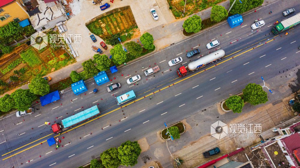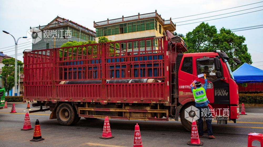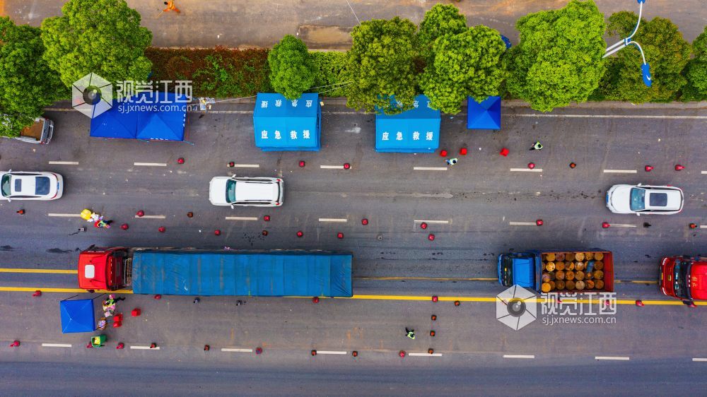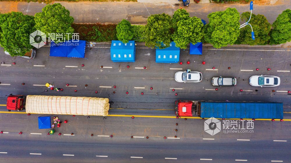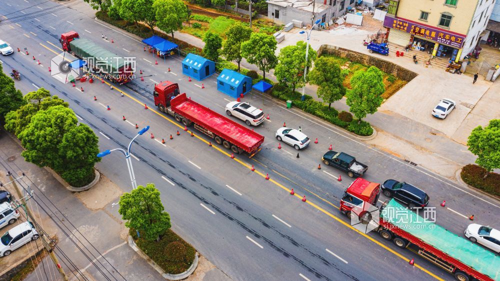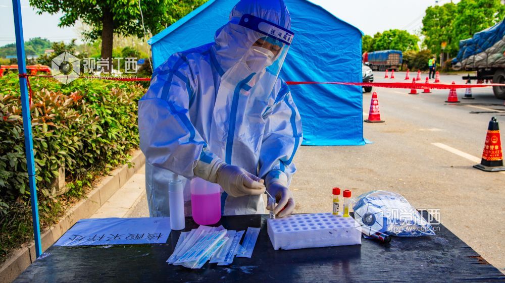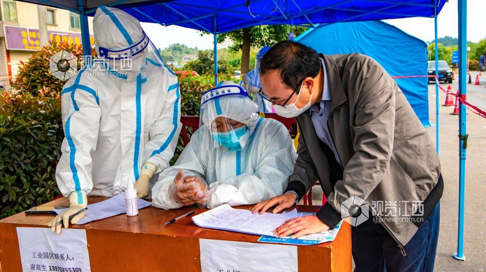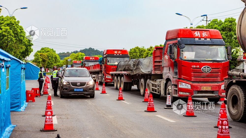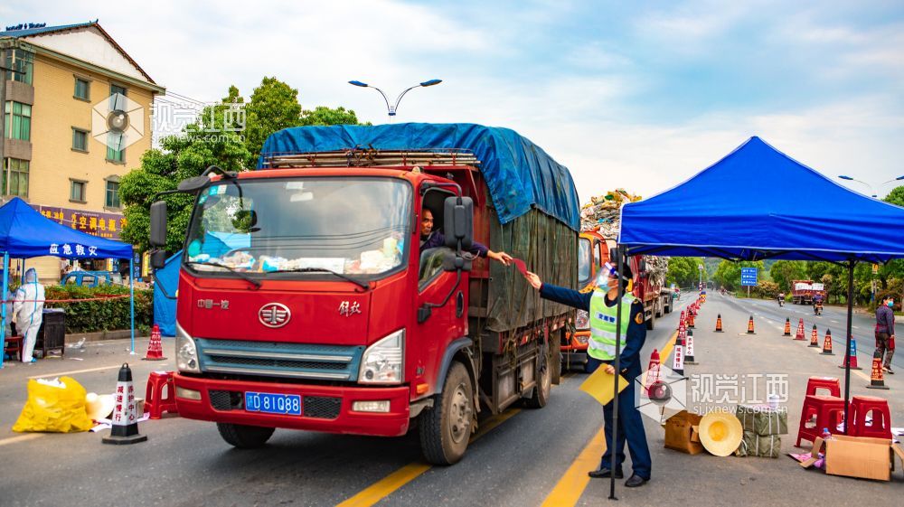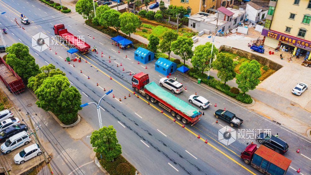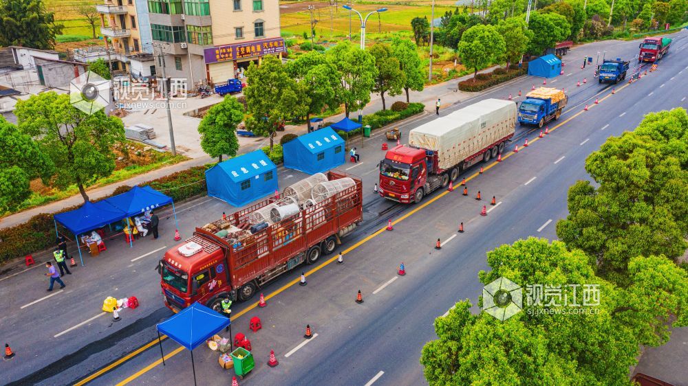 在江西省吉安市峡江县水边镇郭家村出口处县疫情防控检查点,由公安民警、交警、交通、市场监督管理、城市建房管理、乡镇干部和医疗人员等部门组成的疫情防控联队坚守岗位,对进入峡江的车辆和人员实施登记、核查“两码一报告”及进行核酸检测工作,筑牢交通卡口疫情防线。