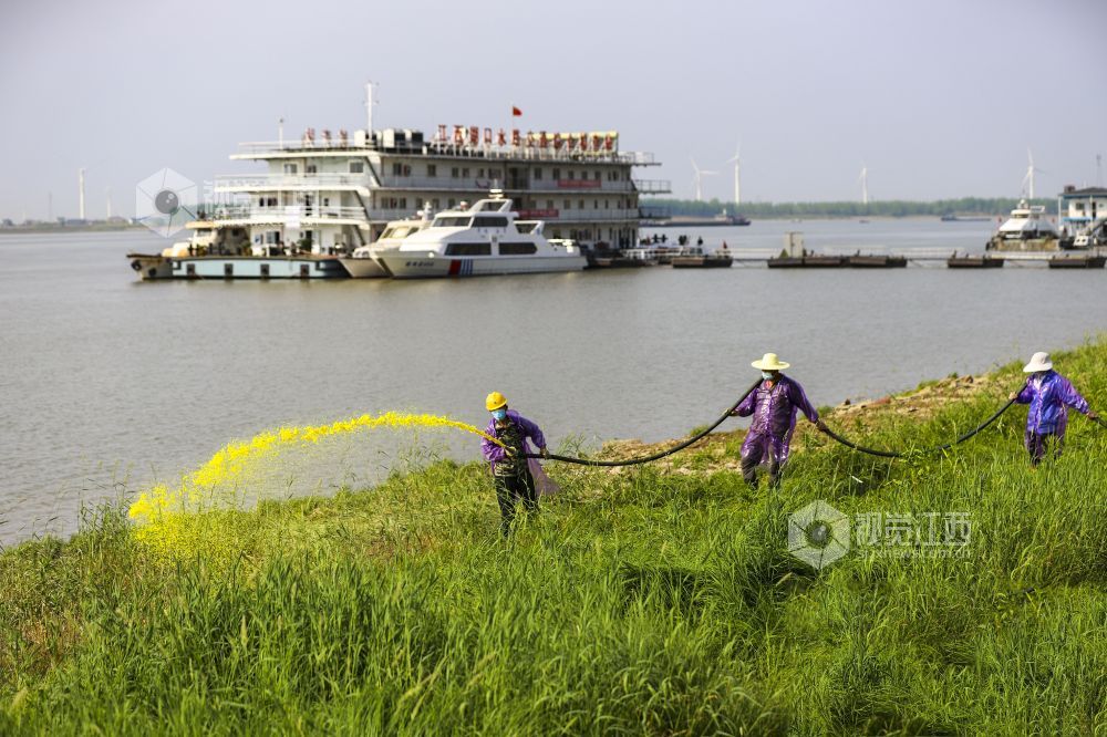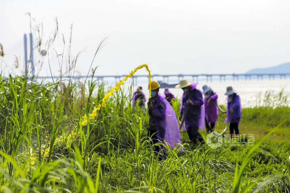当前,正是血吸虫病宿主钉螺活动频繁期,为持续巩固血吸虫病防治成果,有效切断血吸虫病流行的传播链,江西省九江市湖口县血防站抢在鄱阳湖主汛期到来之前,及时对沿湖螺草洲开展药物灭螺。