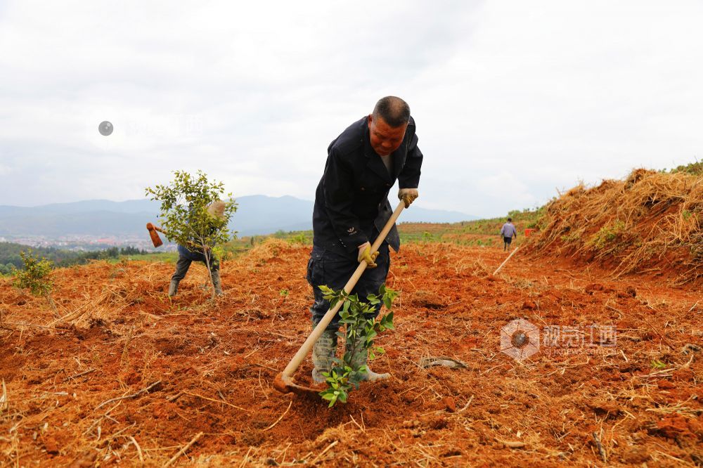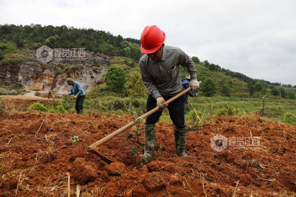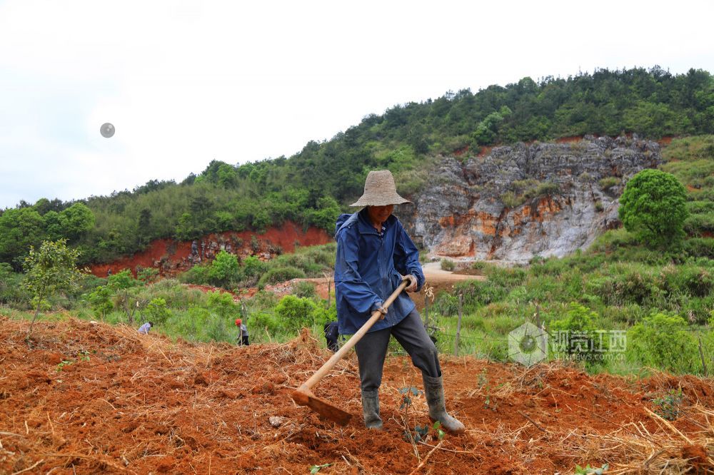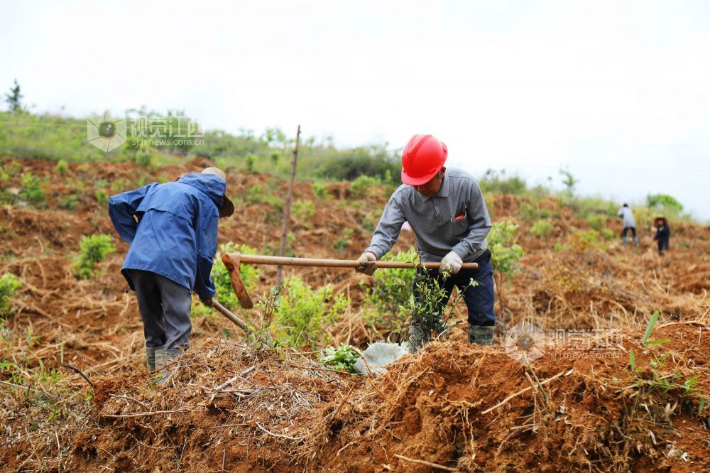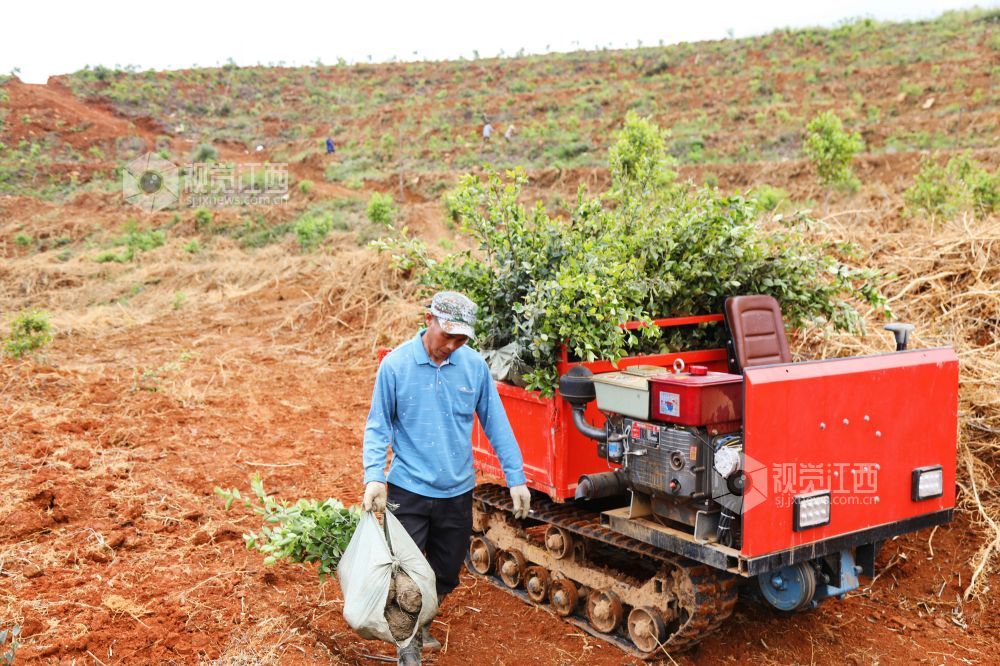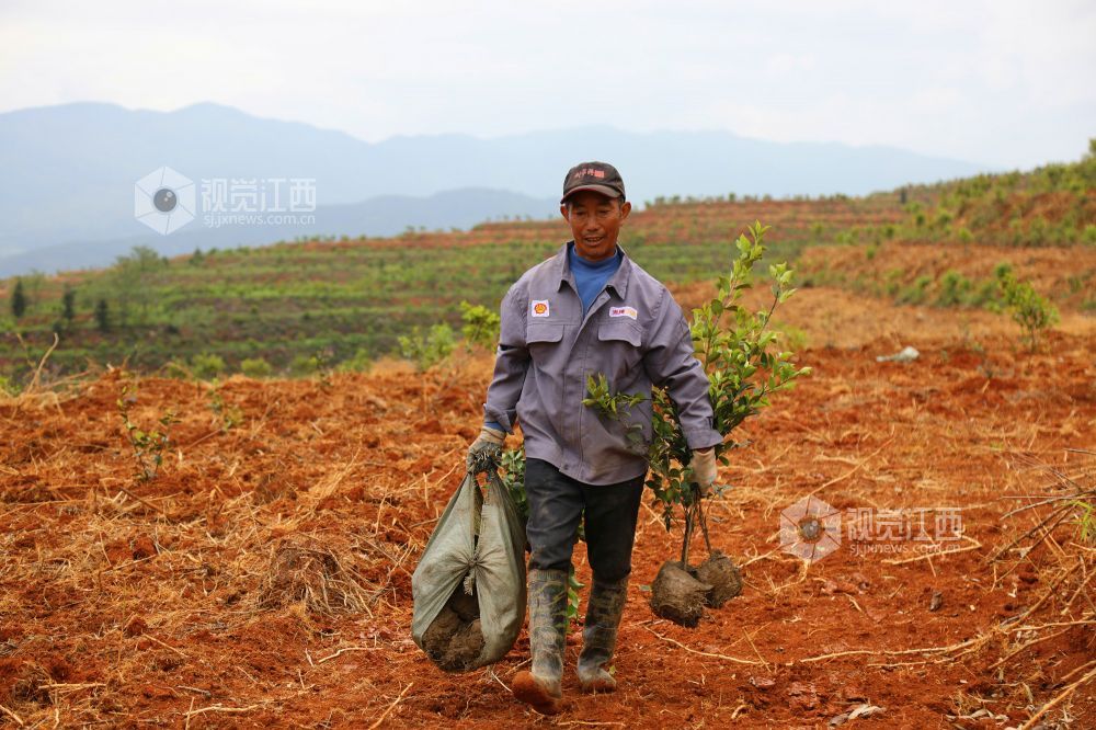 4月14日,江西省莲花县路口镇庙背村油茶基地,村民抢抓晴好天气,栽种优质高产油茶。