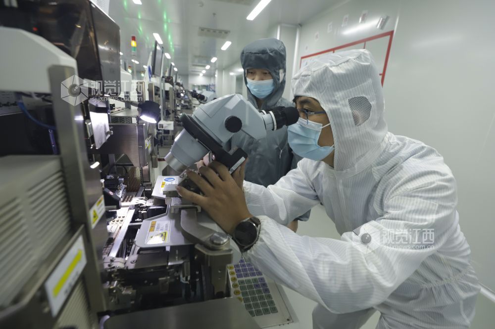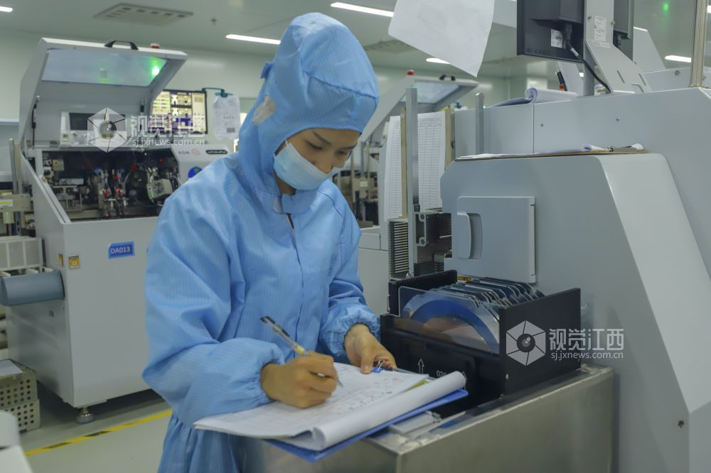 4月14日,落户江西省湖口县海山科技创新试验区的天漪半导体企业在赶制芯片。该企业主要从事芯片设计、封装和销售,目前已建成3条全自动芯片封装生产线,月产量达到1.5亿只。项目二期正在建设中,预计2022年8月份正式投产,满产后每月产量可达4亿只。