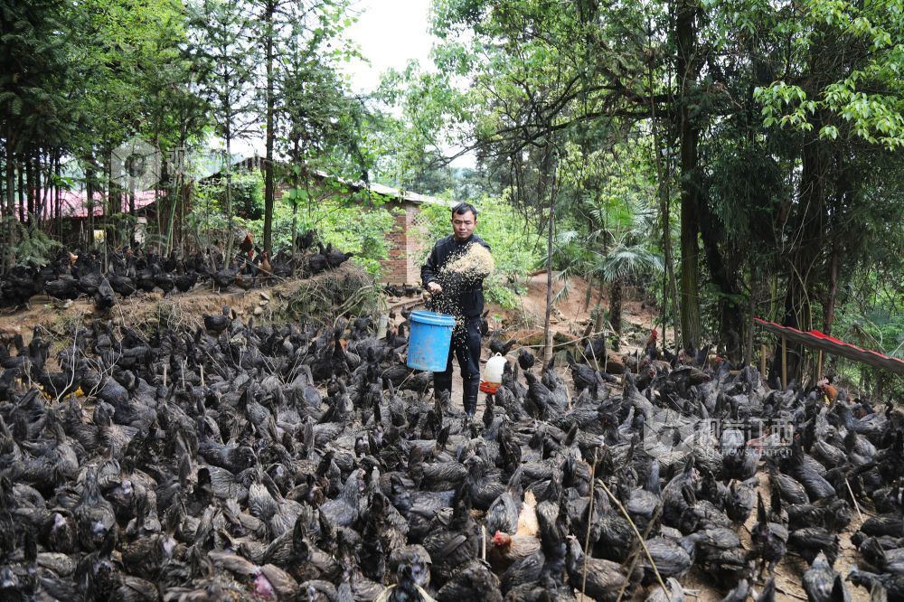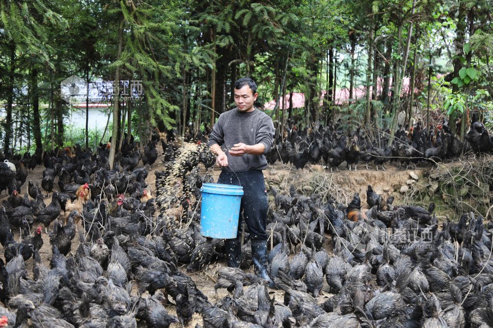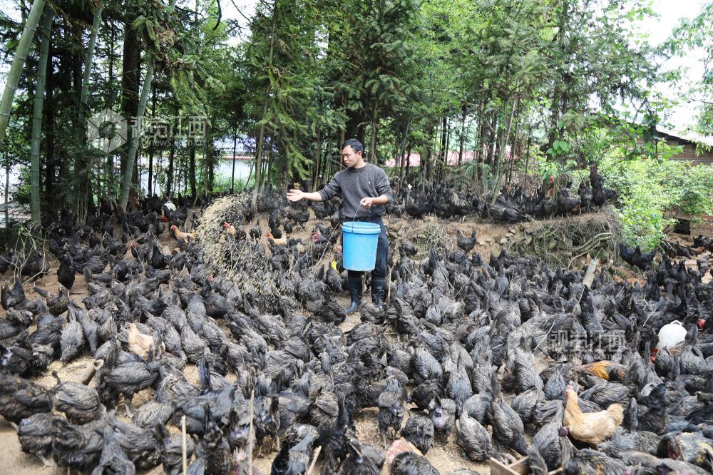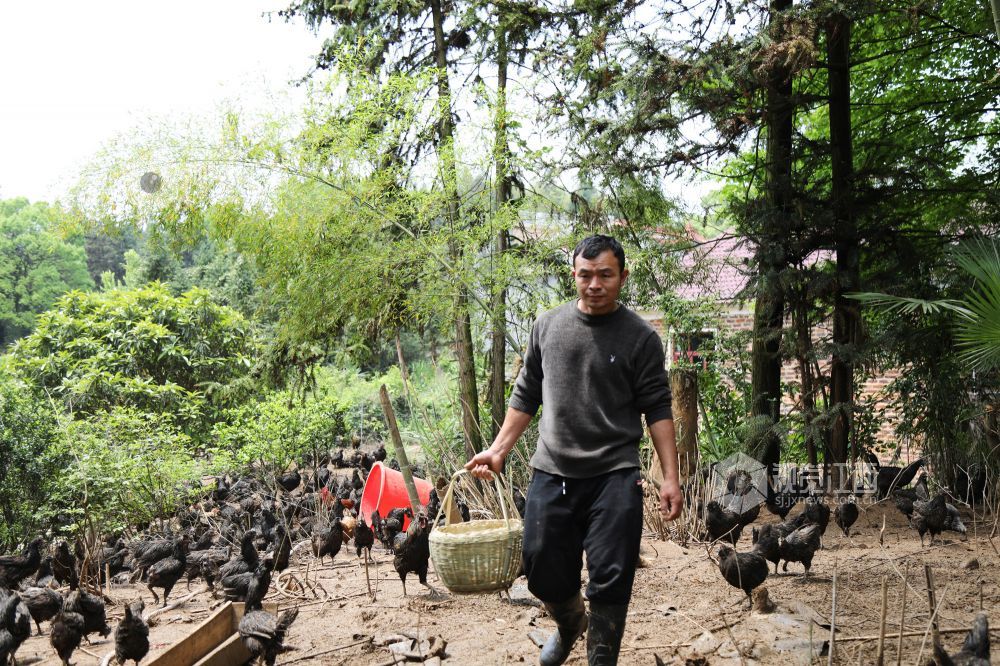 37岁的颜忠华八年前因母亲、女儿生病,外加无一技之长而致贫。2014年12月,颜忠华一家被纳入为建档立卡贫困户,在政府的关怀下,享受了教育、医疗、小额贷款等贫困户政策。加上自己辛勤劳动,2017年度颜忠华家七口人正式脱贫。2021年,颜忠华在政府的关怀下,获得小额贷款,他和本村一个回乡创业的村民刘春雨成立了联信专业合作社,在房后的树林里养殖五黑鸡5000余只。刘春雨以前在江苏从事兽药销售,对养鸡有一定的经验,他负责技术和销售,谢忠华则负责喂养,由于技术过硬,他们喂养的五黑鸡生长快,产蛋多,当年就取得了很好的效益,预计今年纯收入可以达20多万元。