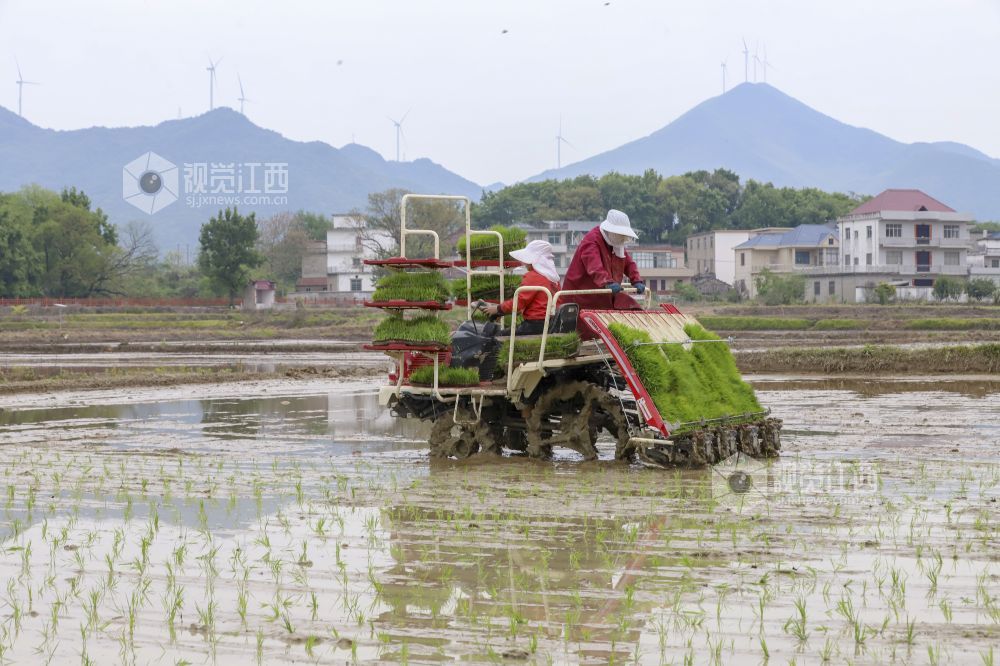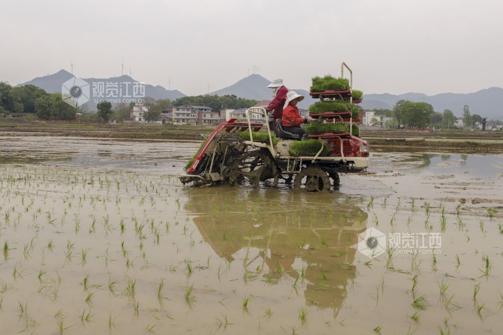2022年4月20日,正值谷雨时节,江西省湖口县武山镇武前村种粮大户王张明、王青梅夫妇在机插再生稻。