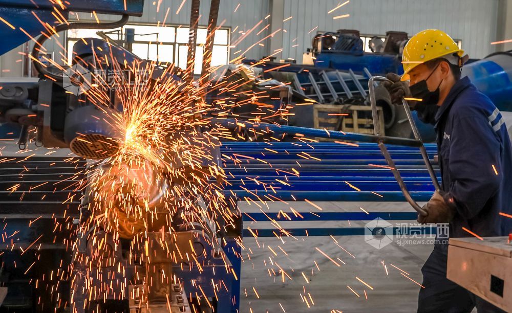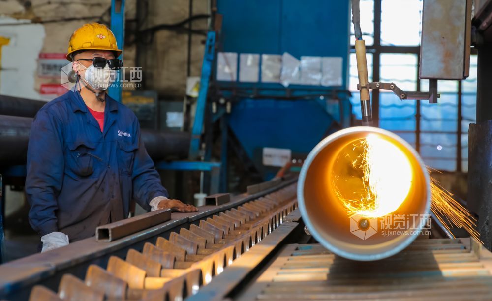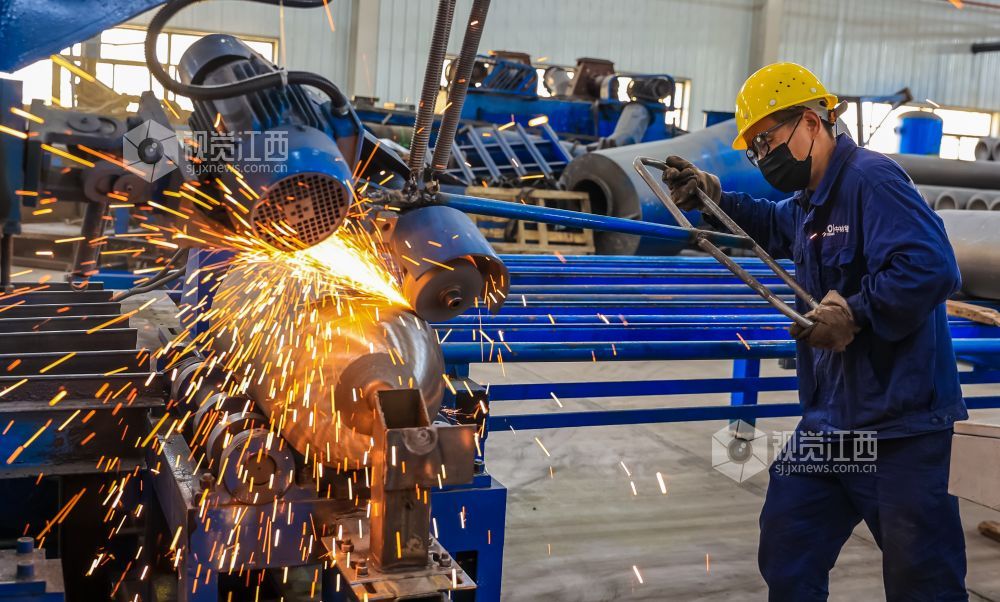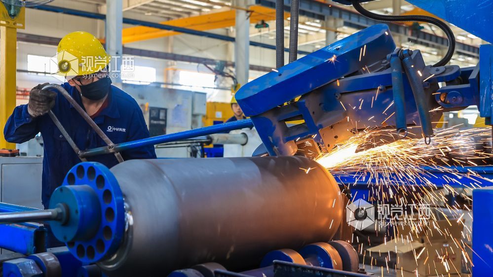 2022年4月21日,位于江西省九江市瑞昌市经开区的中材科技(九江)有限公司车间内火花飞溅,工人们正在紧张地赶制出口订单。