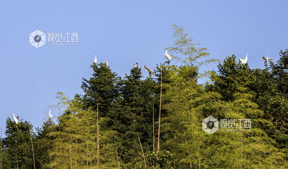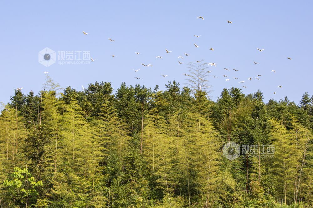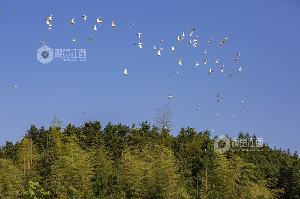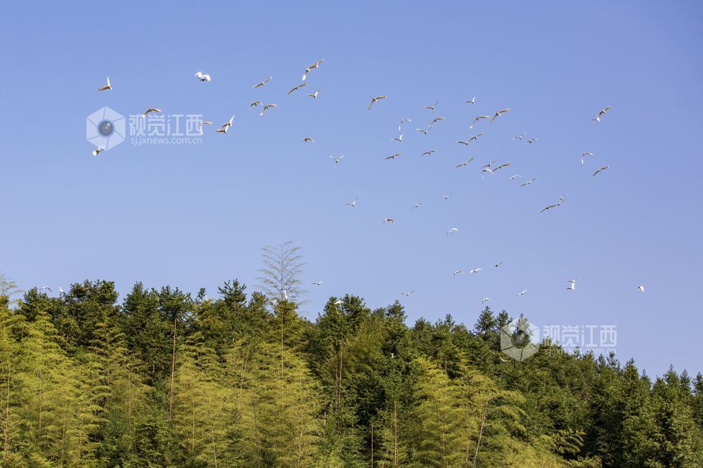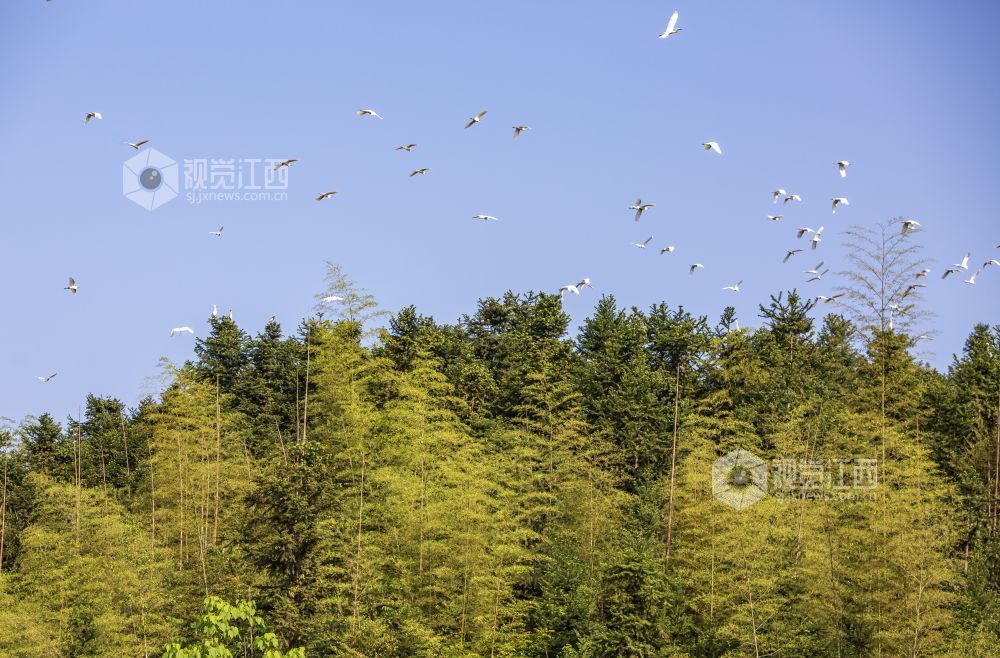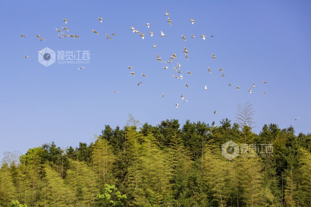 2022年4月21日,江西省分宜县洋江镇白鹭翔集,有的在天空翩翩起舞,有的在树丛中嬉戏,有的在枝头歌唱。
