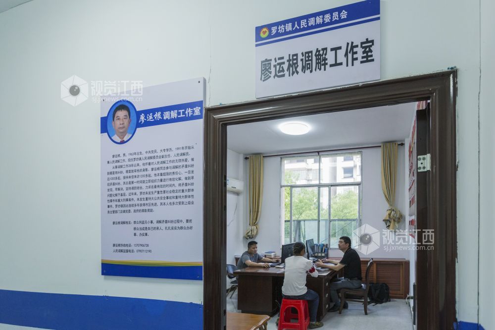 江西省新余市渝水区罗坊镇有个“金牌调解室”叫廖运根调解工作室。今年59岁的廖运根现任罗坊镇综合治理办公室副主任、司法所副所长。他30多年如一日,扎根基层,恪尽职守,敬业奉献,以对工作的“热心”、为民解难“尽心”、调解纠纷“耐心”、办事落实“细心”,切实守护着一方平安,为辖区和谐稳定成功调解处理了上千起矛盾纠纷,辖区矛盾纠纷调解成功率达99%。近几年又为贫困户提供法律援助30余件,在党和政府与人民群众间架起了一座“连心桥”。2019年廖运根被评为全国法律援助工作先进个人。