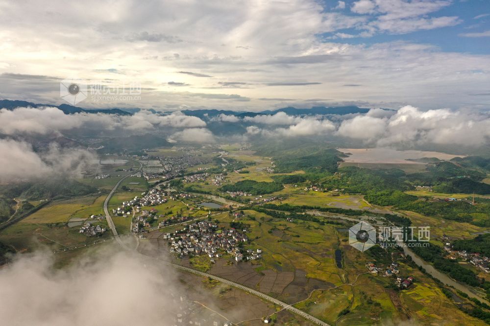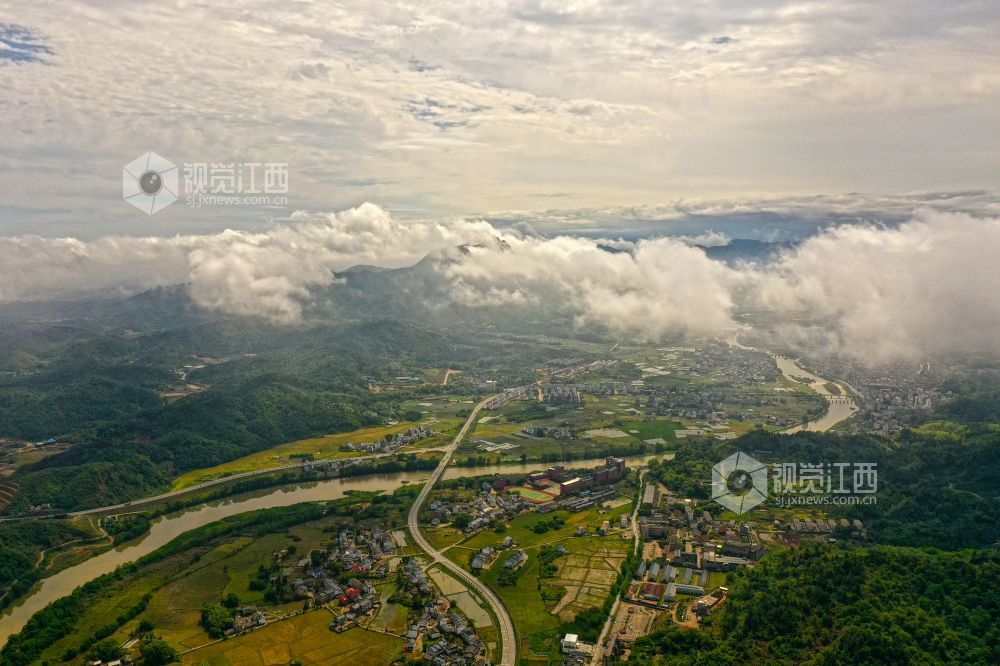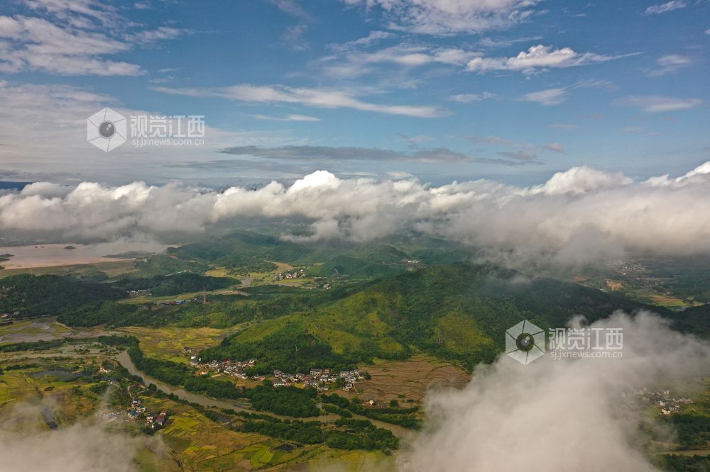 2022年4月26日,航拍江西省上饶市铅山县永平镇乡村被云雾缭绕,宛若仙境。