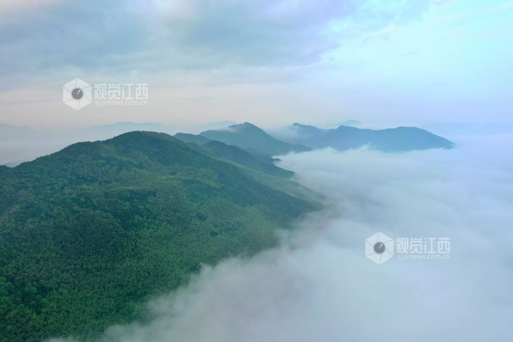 2022年4月27日早晨,雨后的江西省萍乡市芦溪县山口岩国家湿地公园云雾缭绕,宛如仙境,景美如画。