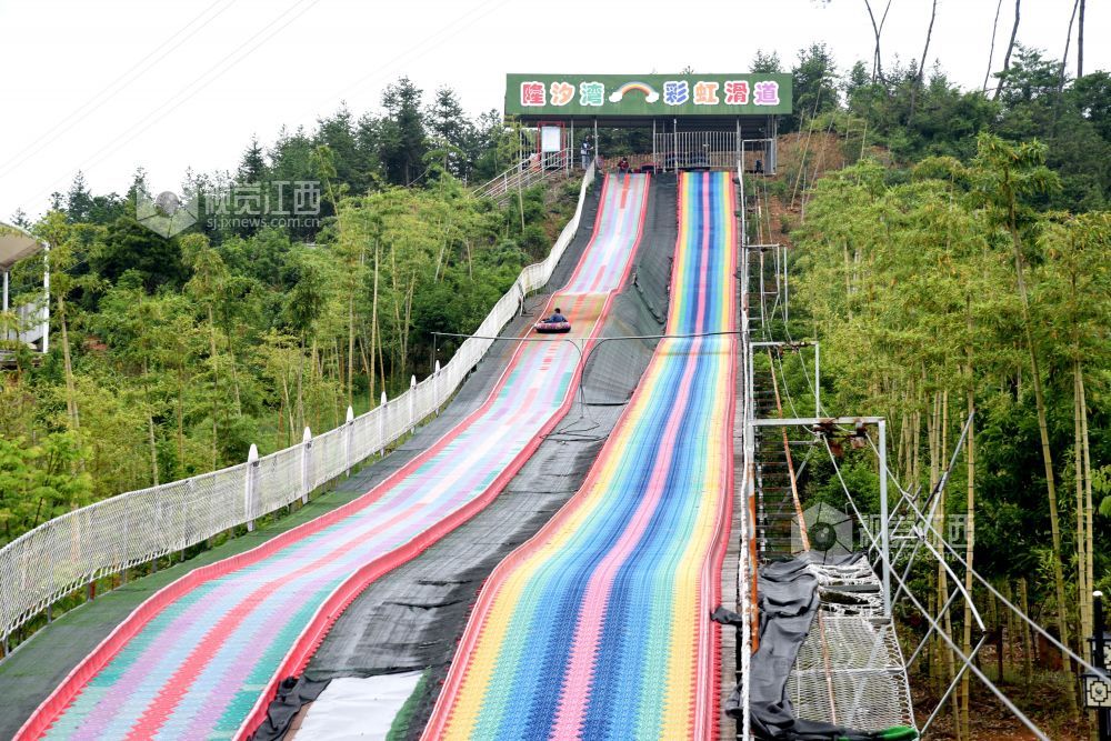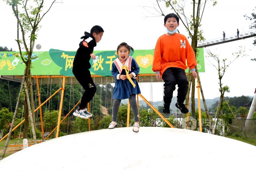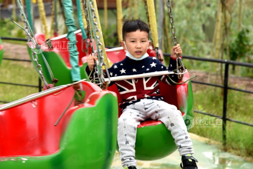 2022年5月2日,在江西省抚州市南丰县隆汐湾生态乐园,游客尽情地体验游乐项目,欢度“五一”小长假。