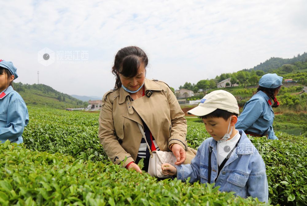 5月2日,游客在江西省莲花县坊楼镇甘红初心茶园采摘茶叶,“五一”假期,不少孩子与家长一起来到茶园,体验采茶乐趣。近年来,莲花县依托生态优势,把农业产业与生态旅游结合起来,在增加了农民收入的同时也扮靓了田园乡村。