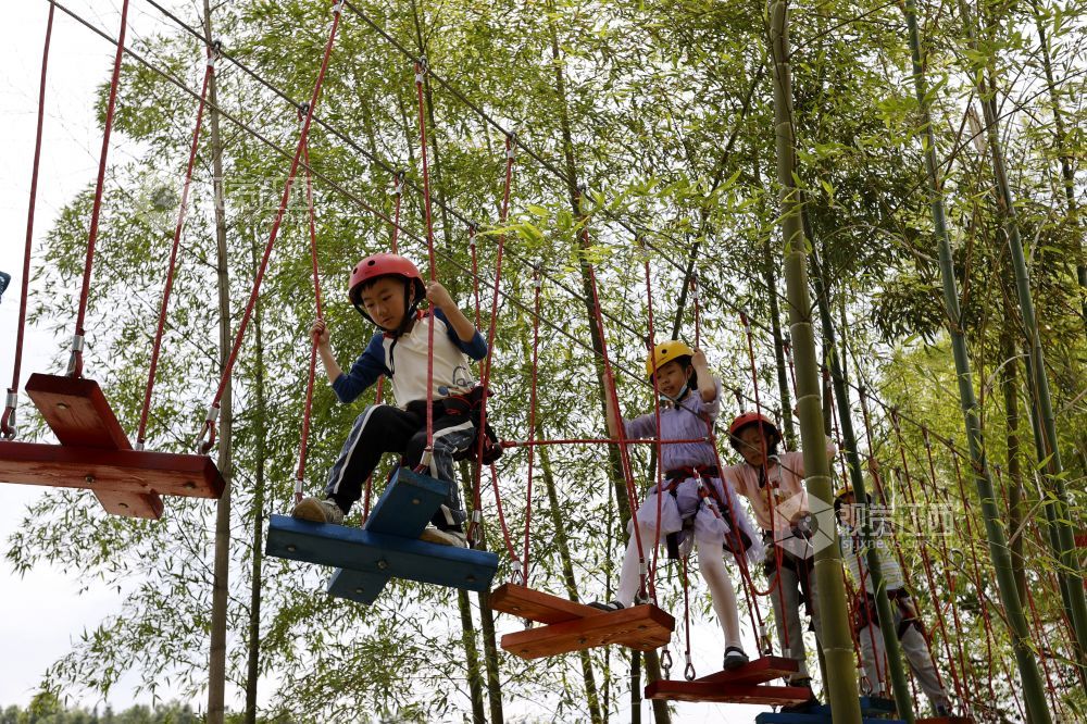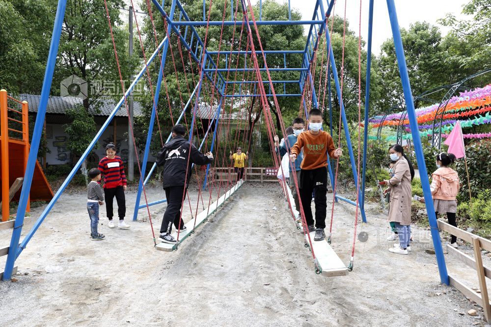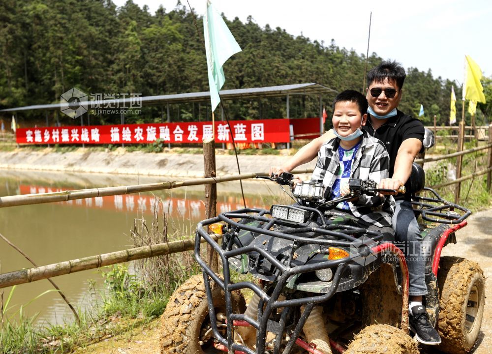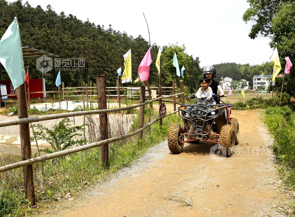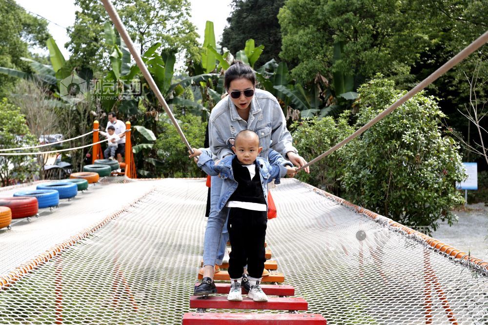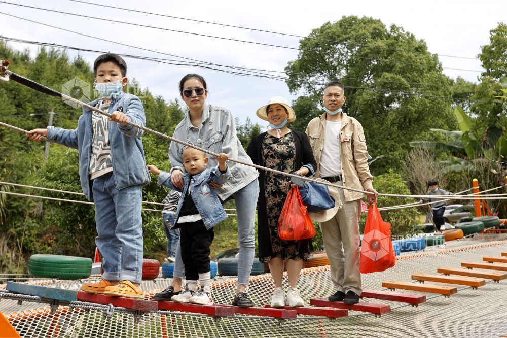 2022年5月3日,游客在江西省吉安市峡江县桐林乡石湫山庄景区游玩。