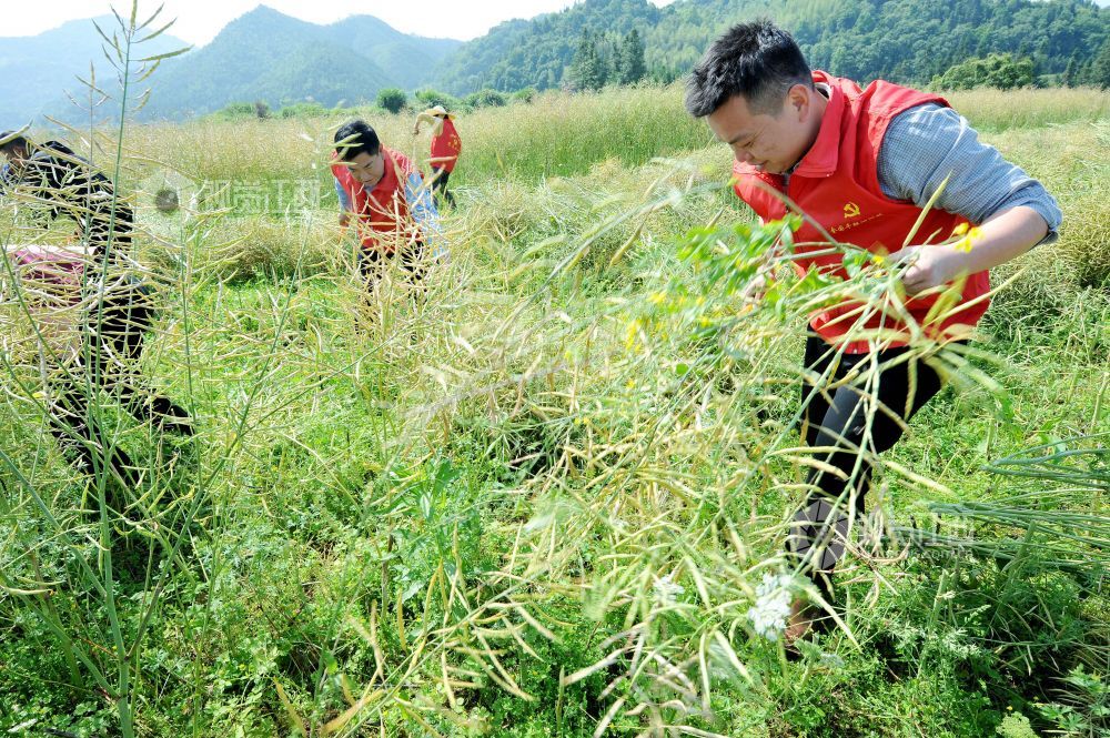 时下正值油菜菜籽成熟的收割季节,江西省德兴市各乡镇抓住近几天天气晴朗,及时组织乡村两级党员义工,利用休息时间深入驻地农家田间地头,帮助家庭劳力少的农户收割油菜,确保农民增产增收,深受广大农民群众的欢迎。