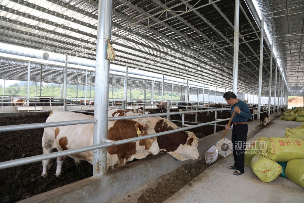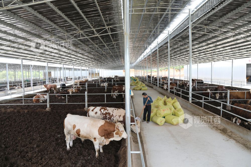 5月9日 ,江西省莲花县良坊镇下布村肉牛养殖基地,村民正在给牛喂食。近年来良坊镇采取“党建+基地+农户”的模式大力发展肉牛养殖村集体、村民通过入股、务工等形式获得收益,目前全镇存栏肉牛5000多头。