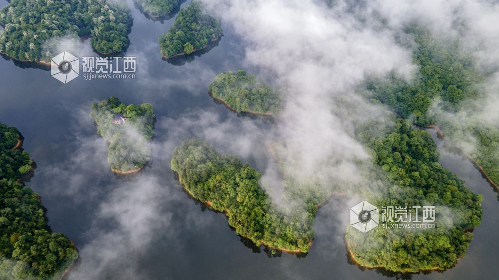 5月9日,江西省新余市仙女湖经历了一场大雨洗礼后,大量水汽蒸发蒸腾,出现云海景观。微风吹动云海,航拍下的岛屿与湖面星罗棋布,时隐时现宛入仙境。