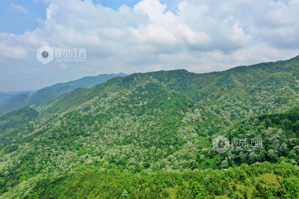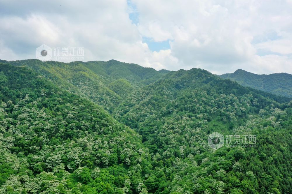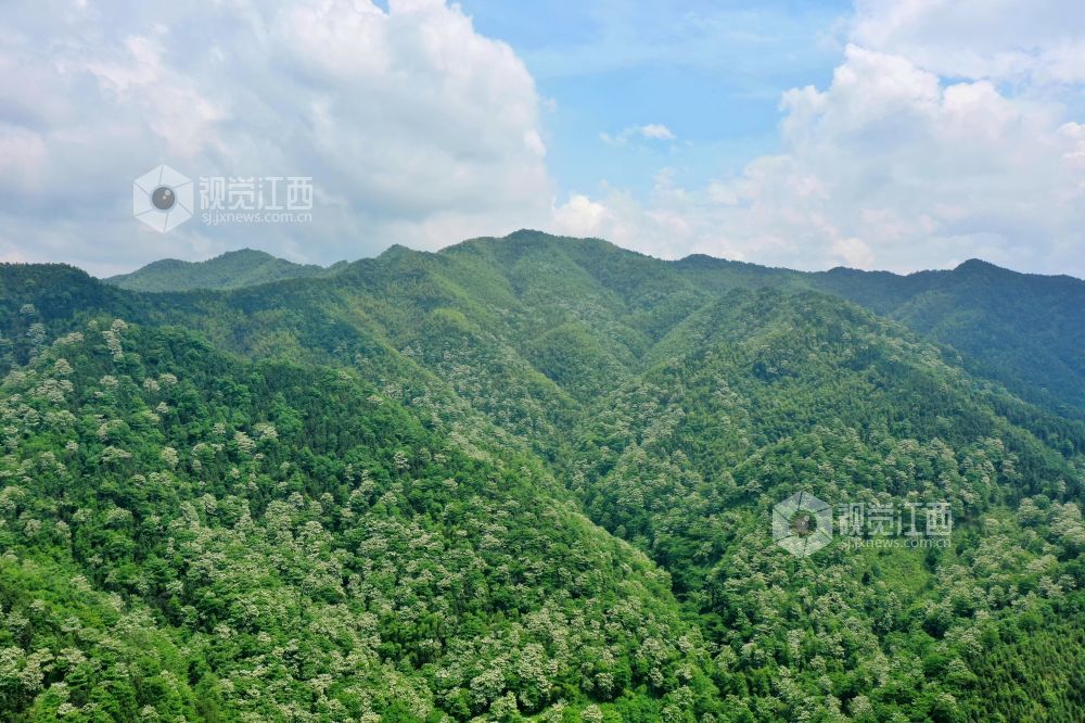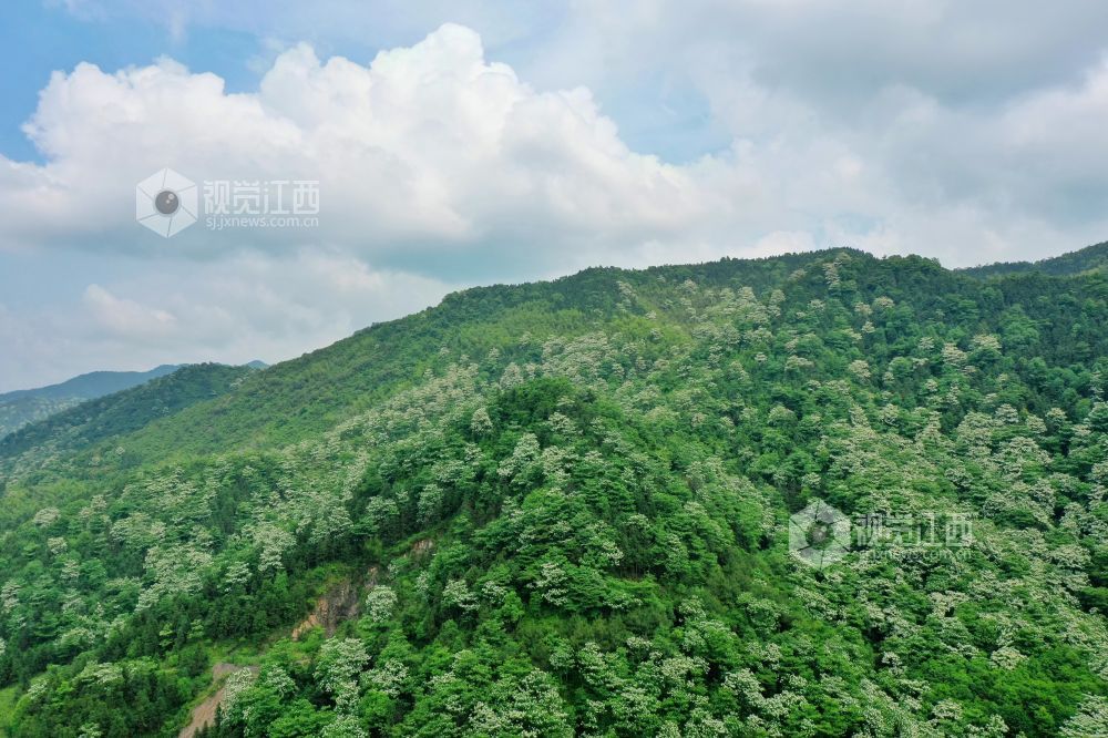 2022年5月9日,江西省萍乡市芦溪县芦溪镇山下村、高楼村一带万亩野生桐花进入盛花期,竞相盛开。
