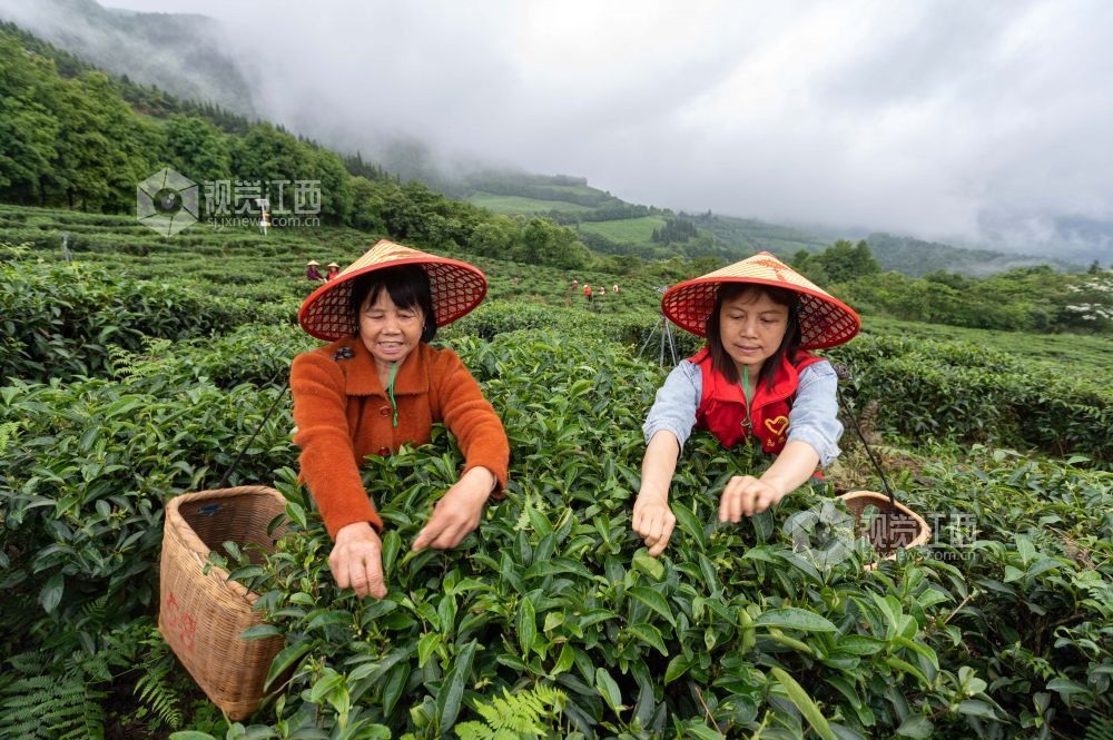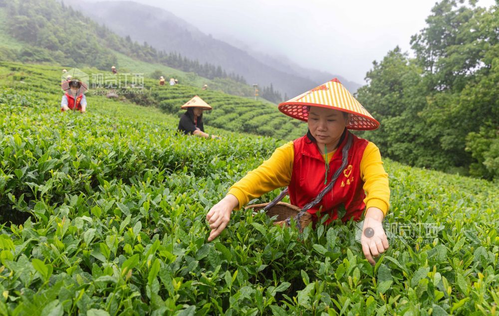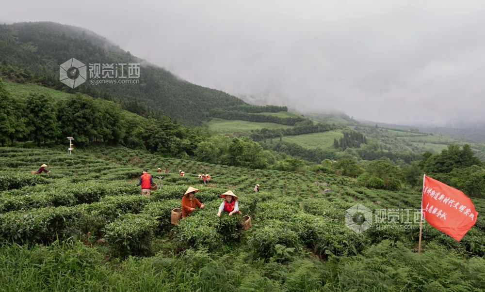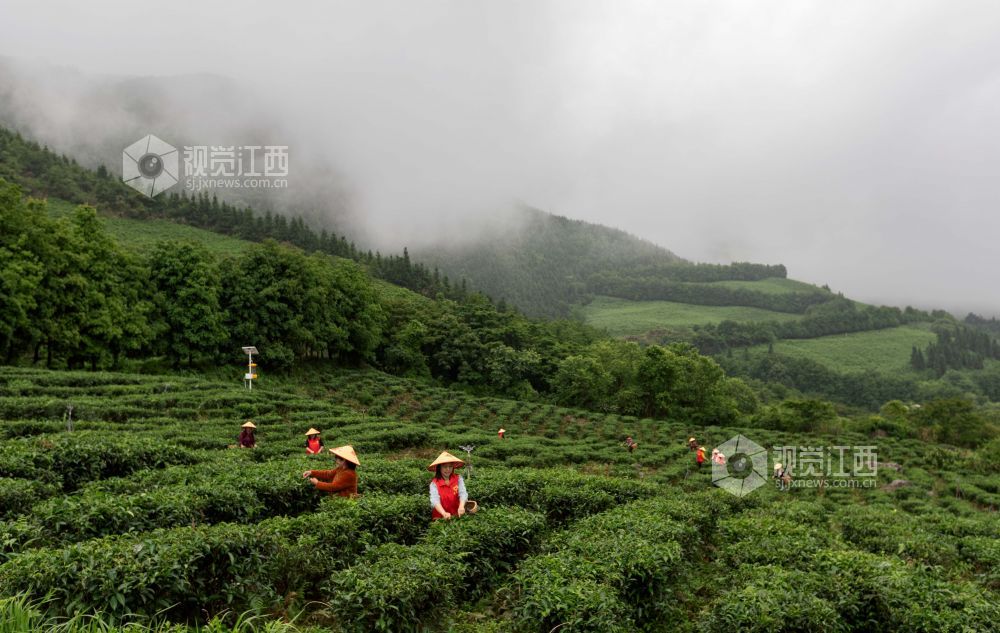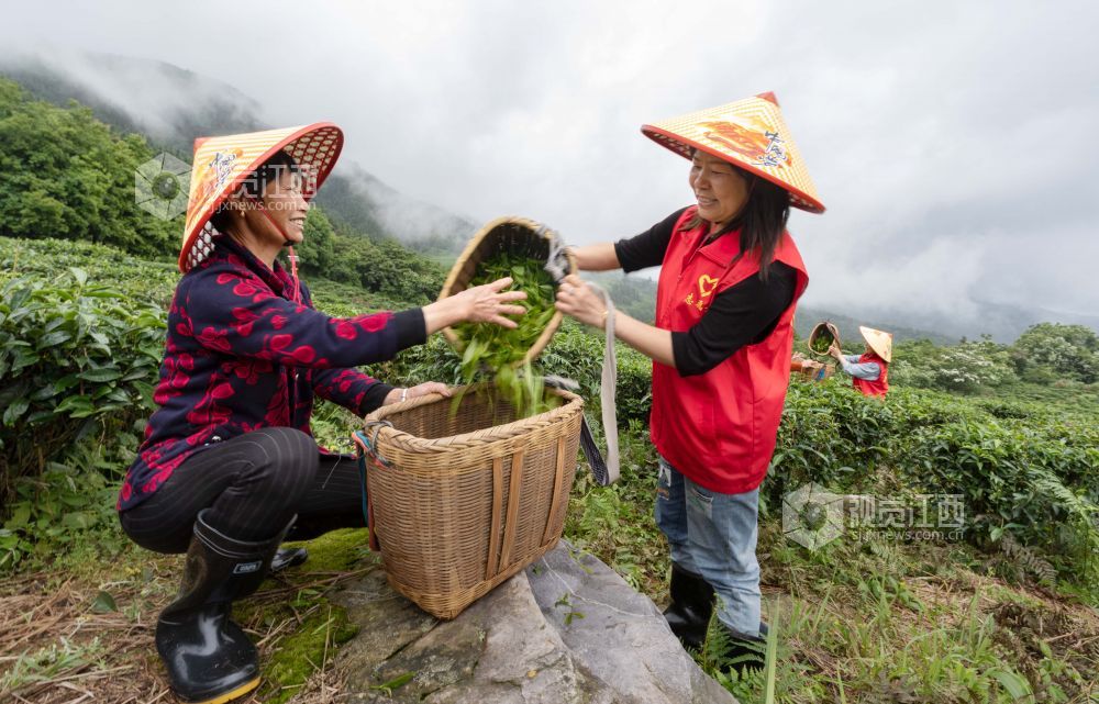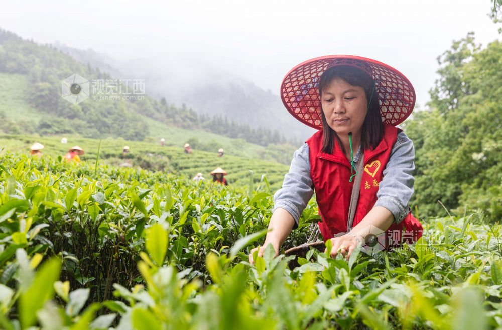 立夏已过,正值夏茶采摘的好时节,5月11日,在江西省永新县垦殖场崖雾茶基地,当地的志愿者正帮助茶农采摘夏茶,现场一片繁忙景象。