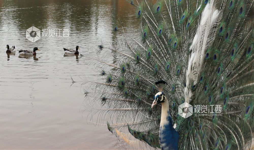 2022年5月14日,在江西省鄱阳县鄱阳湖国家湿地公园内美丽的孔雀开屏吸引游客眼球。据悉,孔雀开屏是类似鸟类的一种求偶表现,每年四五月季节到来时,雄孔雀常将尾羽高高竖起,宽宽地展开,绚丽夺目,雄孔雀它那五彩缤纷、色泽艳丽的尾屏,还不停地做出各种各样优美的舞蹈动作,向雌孔雀炫耀自己的美丽 。