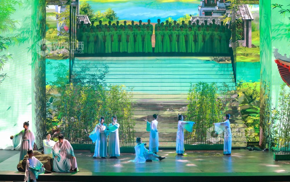 吉水县以“旅发大会”为契机,以原创为手段,发掘吉水文化,创造属于吉水的全新表达,留下了历久弥新的艺术作品。整场晚会颠覆以歌舞为主的模式,运用推理化的剧情、互动性的观演、沉浸式的场景,实现从文艺演出到剧情大片、从观赏体验到情境交互的迭代升级,更实现了“大美吉水”的主题升华。