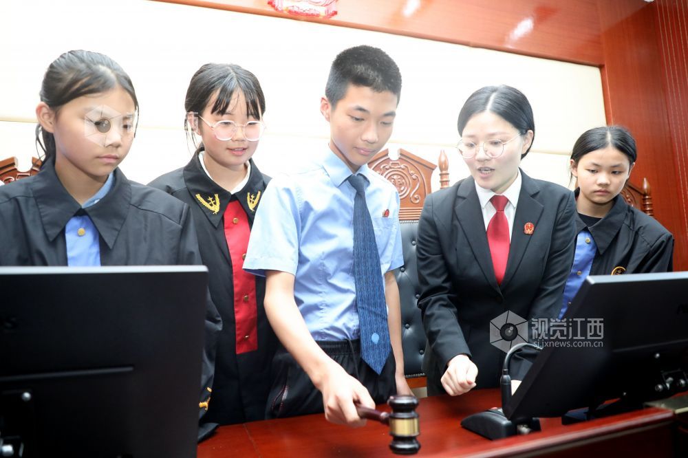 2022年5月24日,江西省吉安市永丰县佐龙学校30余名学生,走进永丰县人民法院少年法庭进行参观研学,零距离接受法治教育。