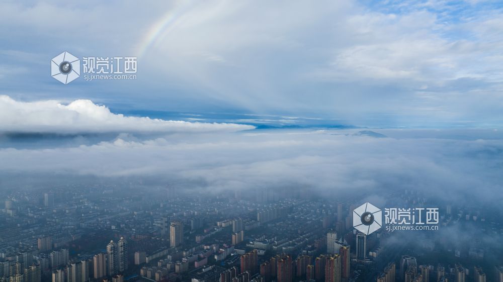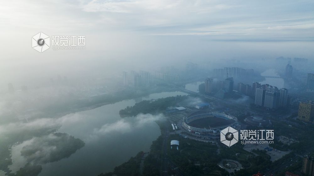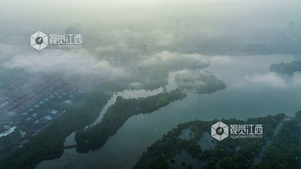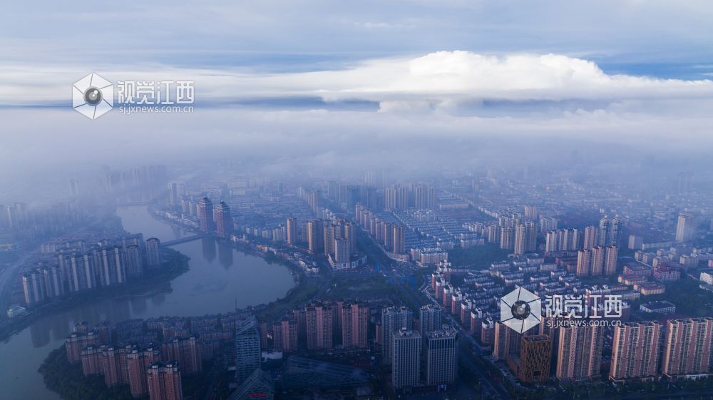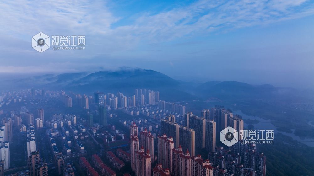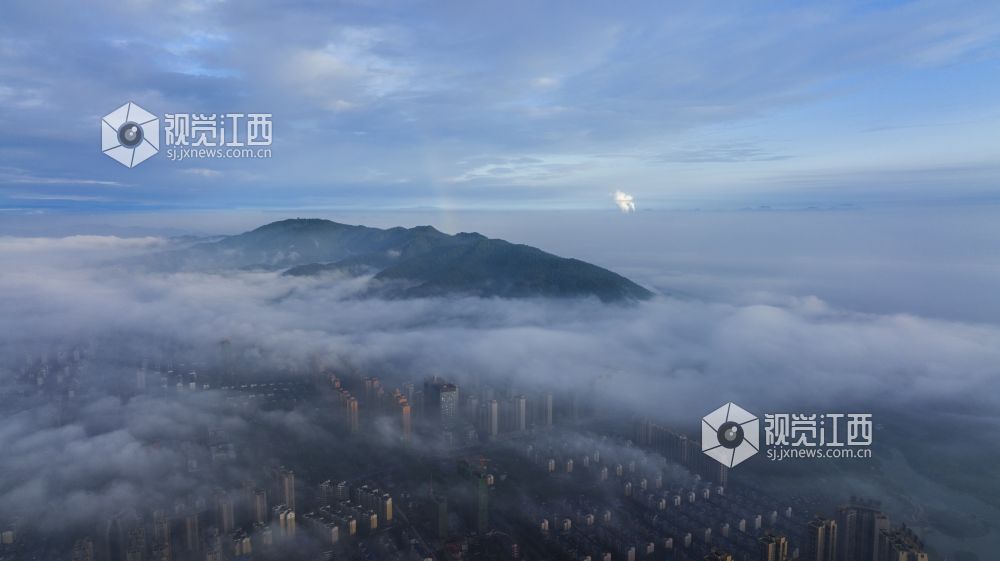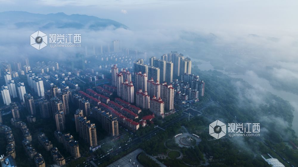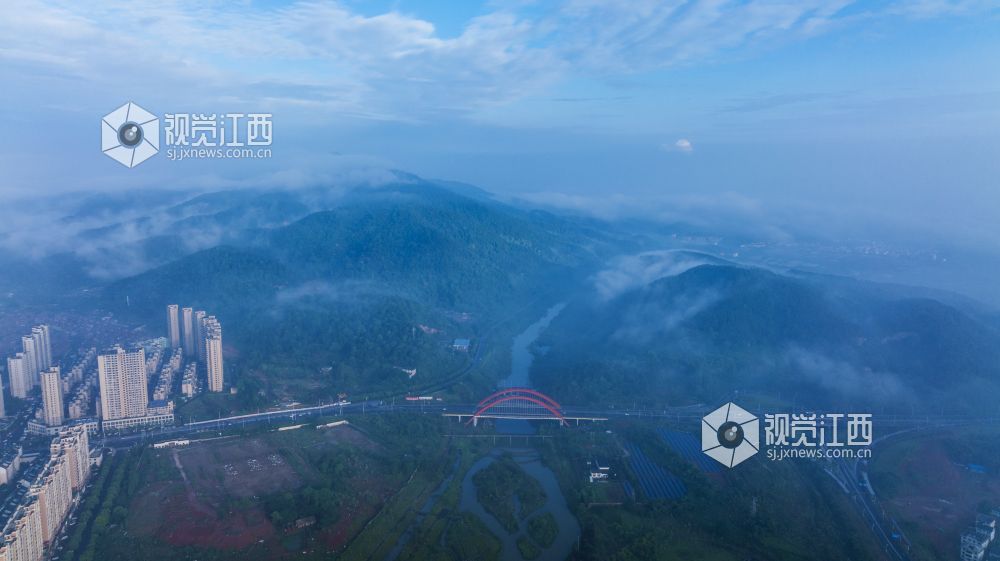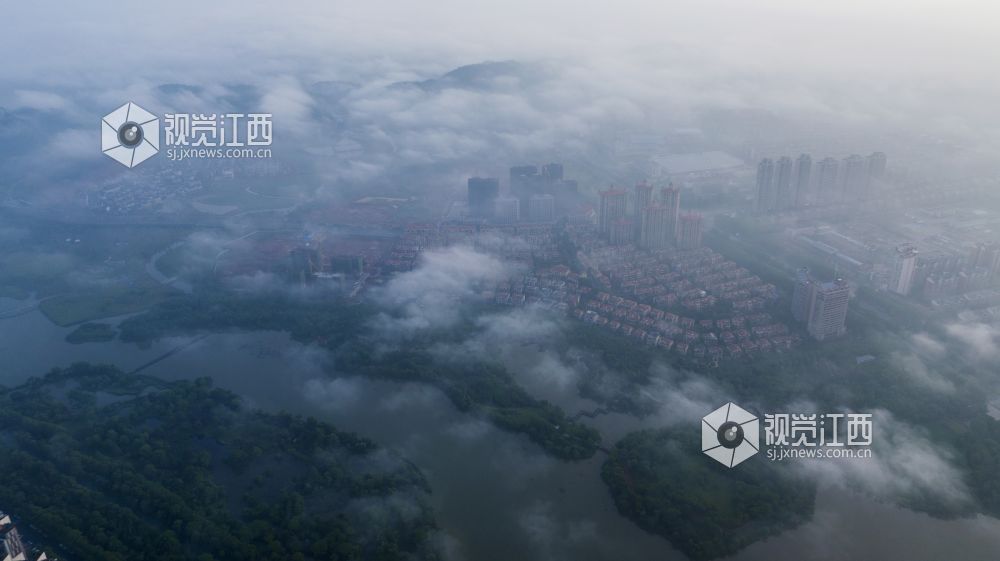 5月25日清晨,依山傍水的江西新余雨过天晴,新余孔目江国家湿地公园和仰天岗国家森林公园上渐渐升腾起云雾,从空中俯瞰,整个城市在云雾缭绕中若隐若现,美轮美奂。