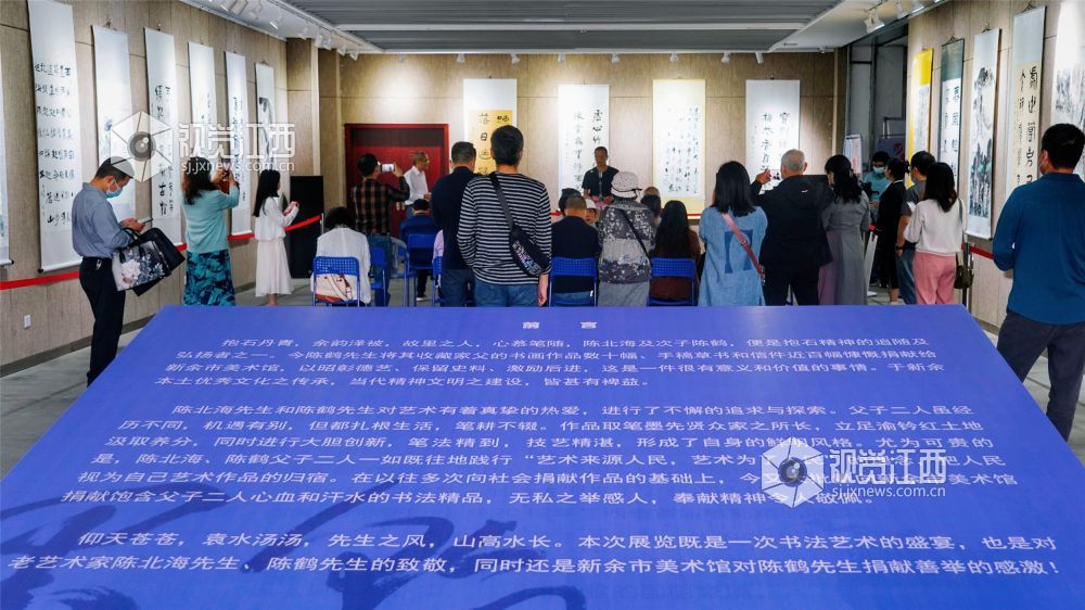 5月25日,陈北海、陈鹤父子书画作品捐赠仪式在江西省新余市美术馆举行,陈鹤先生将父子俩多年来精心创作的89幅书画作品无偿捐赠给市美术馆。捐赠仪式后,陈鹤先生及书画爱好者们一同鉴赏了捐赠的书画作品,陈鹤先生对捐赠的书画作品逐一进行了介绍。