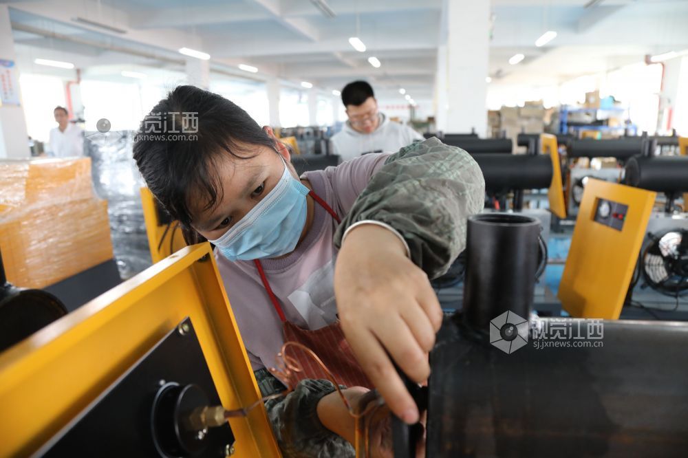 2022年5月25日,江西省莲花县工业园区艾维斯机械有限公司生产车间内,工人们正加紧赶制发往珠三角地区的干燥机产品。该公司年产干燥机6万台,产品销往全国三十多个省市和越南、印度、马来西亚等国家,并开始进入欧美市场。今年以来,莲花县努力克服疫情带来的影响,围绕“强攻二季度、确保双过半”的目标,出台多项政策扶持企业发展,确保稳增长、稳就业、惠民生。