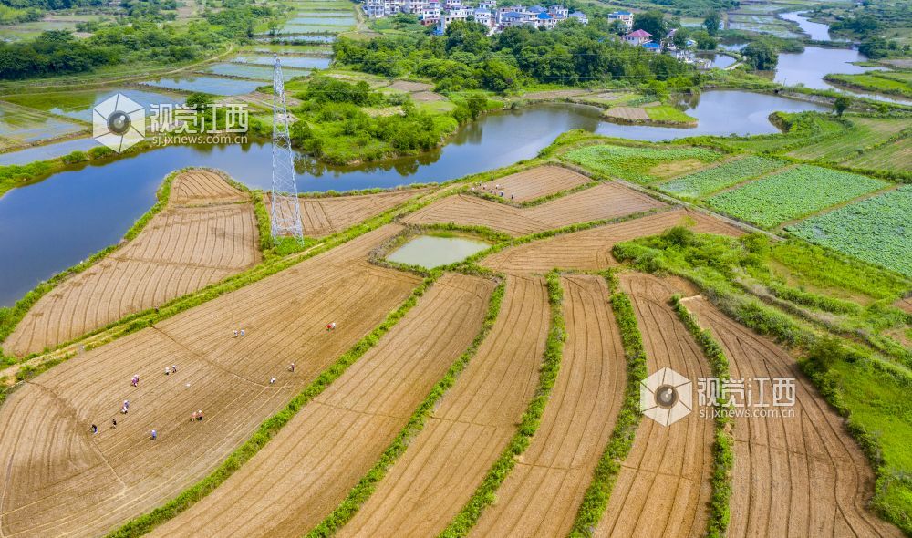 初夏,江西省湖口县城山镇东庄村村民正在连片高标准改造后的土地里播钟棉花。近年来,湖口县加大对村集体产业帮扶资金投入力度,各村全面推进高标准土地改造,通过流转土地、发展产业,盘活了沉睡的土地资源。2021年湖口县村级集体经济平均收入超20万元。
