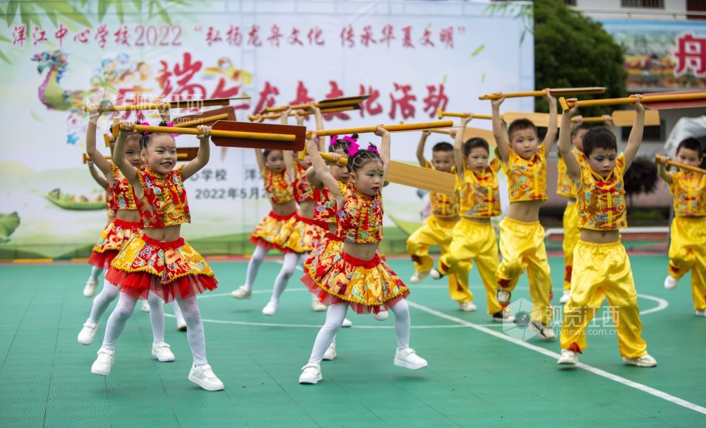 2022年5月26日,江西省分宜县洋江中心学校校园里歌声飘扬、舞庆端阳,又是一年五月五。为了让龙舟学子体验端午节所蕴涵的意义,值此传统佳节到来之际,洋江中心学校及中心幼儿园开展了“喜庆端午,情系龙舟”的系列龙舟文化活动。