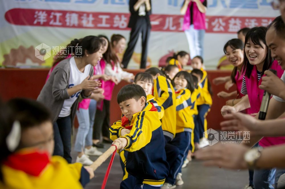 活动现场人声鼎沸,热闹非凡。一首大合唱《明天会更好》拉开了活动帷幕,接着心有灵犀猜成语、趣味游戏--夹乒乓球、彩虹滑梯、三人四足走、两地书亲子情、拔河比赛等,其间洋江派出所民警还为小朋友做防溺水安全知识宣传演讲。丰富的游戏环节,紧张激烈的活动场面,处处洋溢着欢乐的气息。