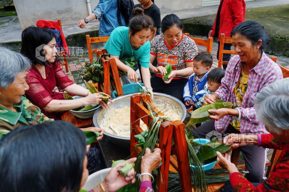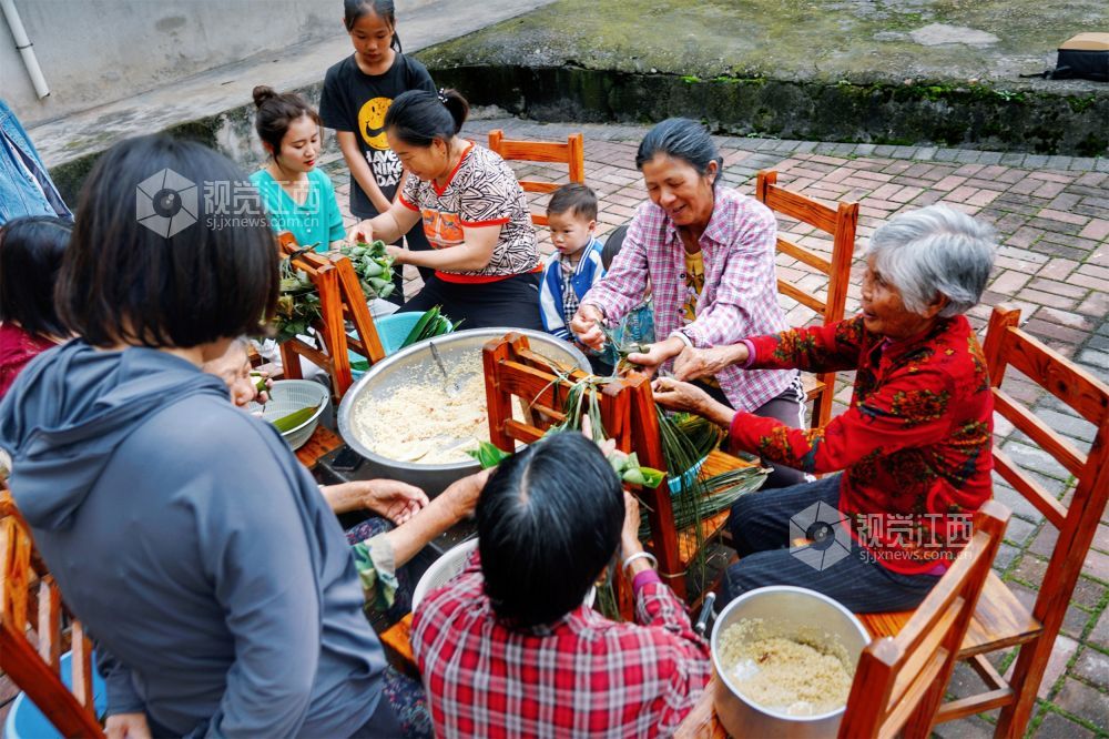 2022年5月27日,村民在江西省新余市仙女湖区河下镇礼珠村包粽子。端午将至,村民用包粽子的方式迎接传统节日的到来。