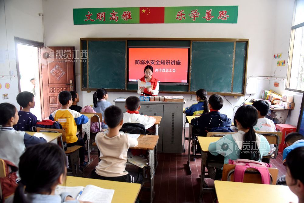 2022年5月27日,江西省抚州市南丰县总工会组织开展的“安全教育进校园”活动走进太和镇康都村小学,旨在增强农村留守儿童及困境儿童的防溺水安全意识和避险自救能力。