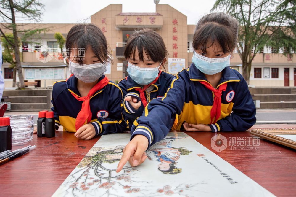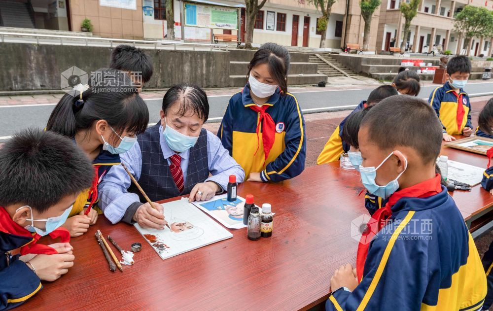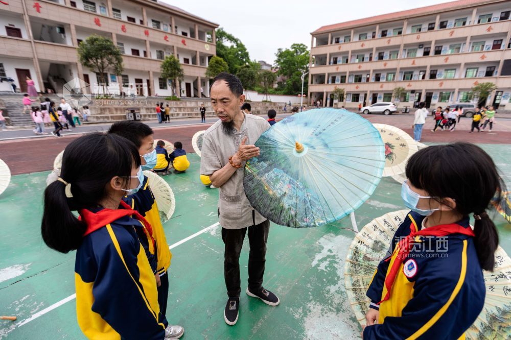 5月27日,在江西省永新县里田镇里田中心小学,来自当地的几位艺术大师正在给孩子们传授书法、瓷板画、油纸伞制作等技艺,让孩子们近距离感受中国传统文化的魅力。