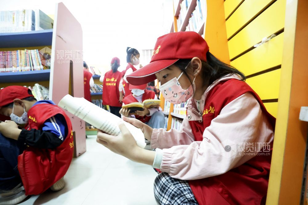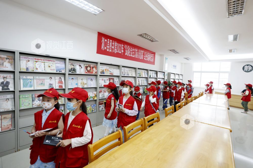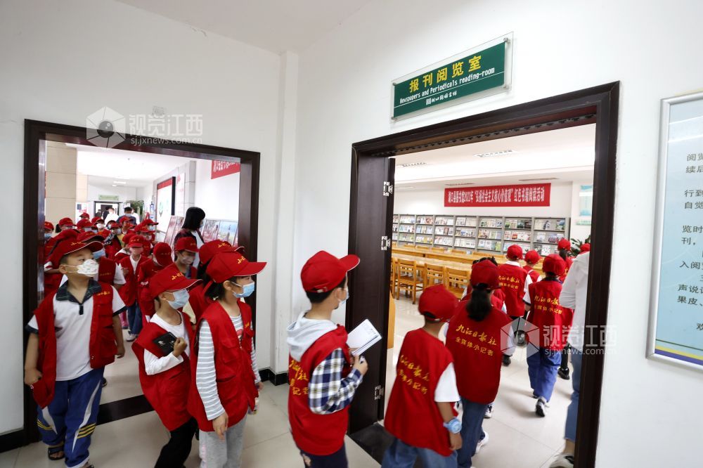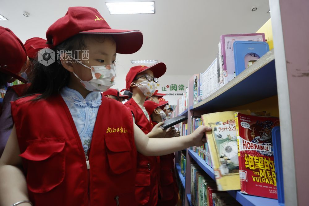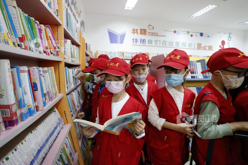 读书使人明智,读书开拓人的眼界。2022年5月29日,江西省九江市湖口县第三小学的小记者们在该县图书馆开启一场书香之旅,书架上一本本新奇的少儿读物吸引着他们翻阅浏览。