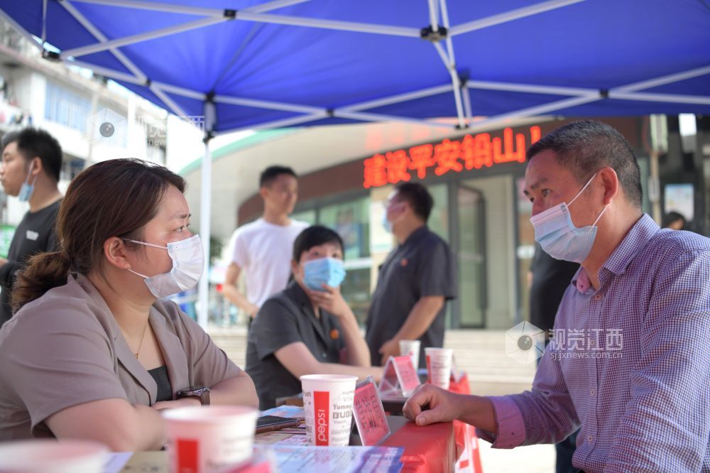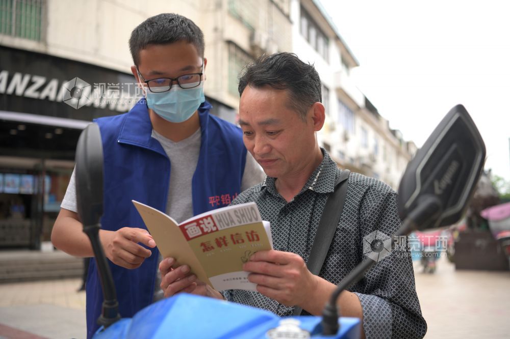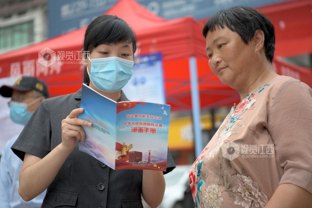 2022年5月31日,在江西省上饶市铅山县永平镇步行街的法律宣传点,市民纷纷前来咨询法律知识。