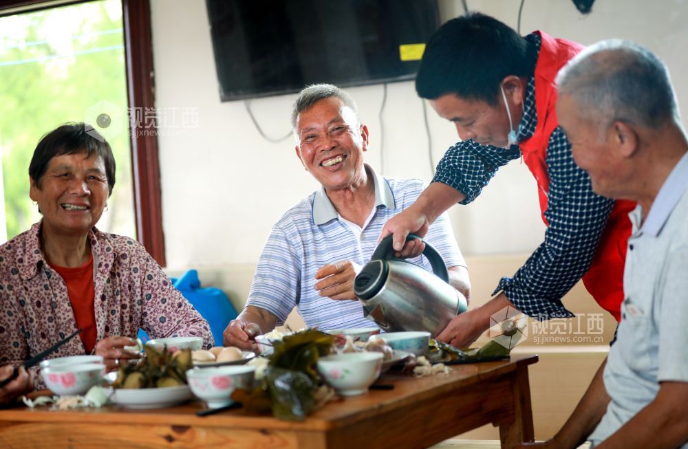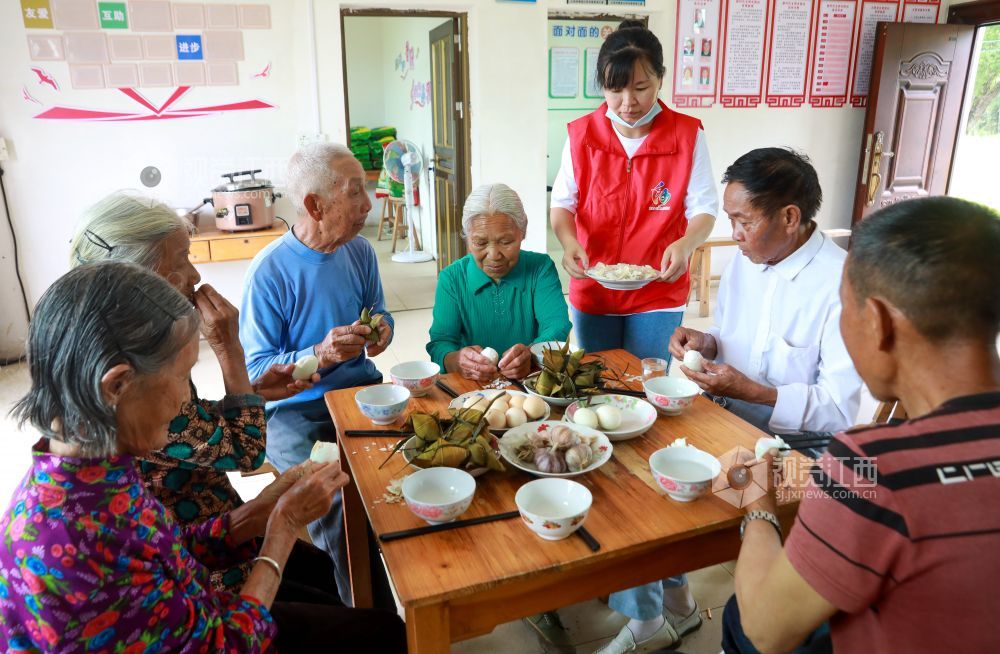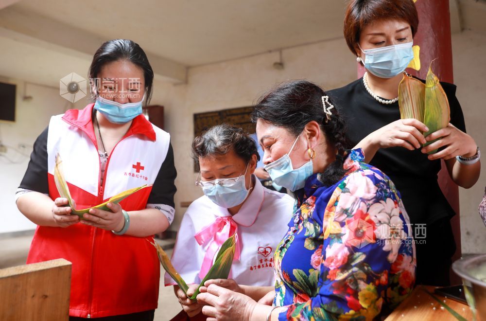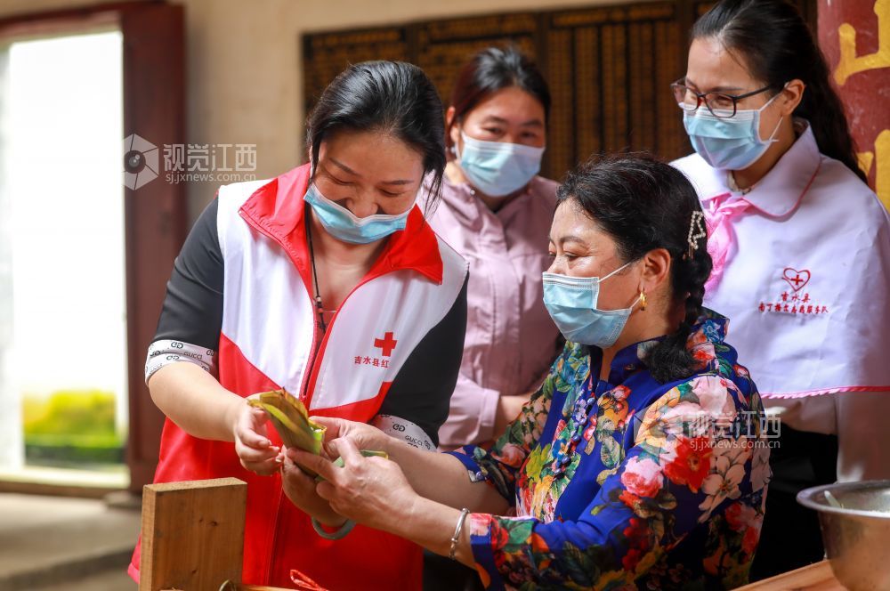 端午将至,江西省吉安市吉水县红十字会组织爱心志愿者来到该县白沙镇上田村委会孟江村,给村中老人送来节日礼物,为老人体检,和老人一起包粽子、吃粽子,将浓浓的节日情带给老人们。