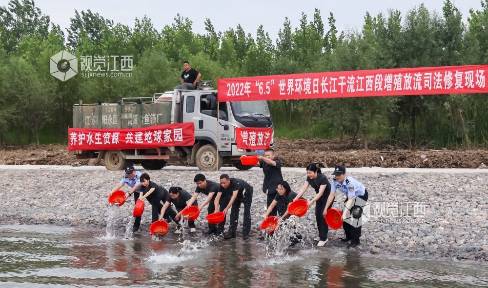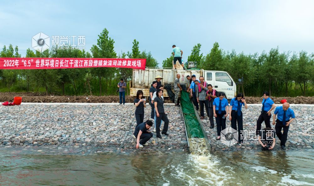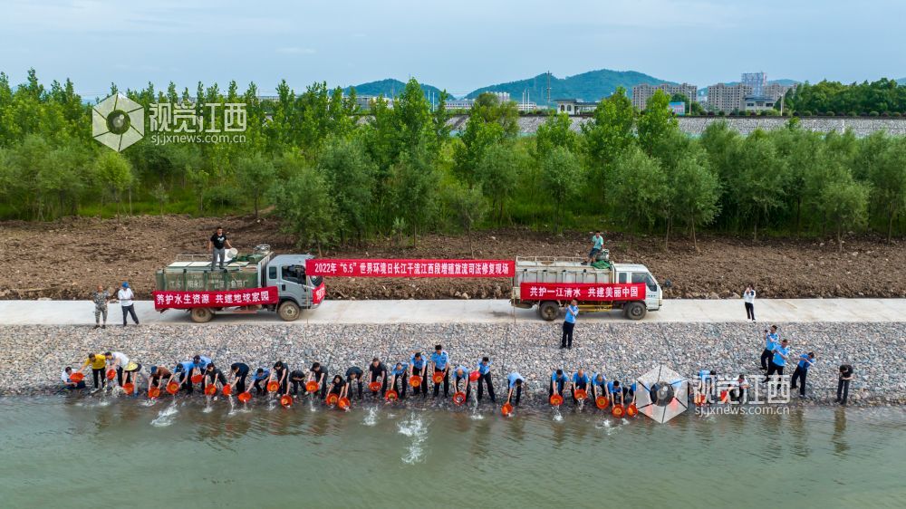 值2022年“6?5”世界环境日来临之际,长江干流江西段环境资源法庭会同相关部门在江西省瑞昌市码头镇狗头矶增殖放流点向长江投放四大家鱼冬片7万尾。此次增殖放流活动旨在弥补长江江西段水生生物资源损失,修复长江水域生态环境,同时教育沿江居民拒绝非法捕捞,形成保护长江生态环境的自觉行动。