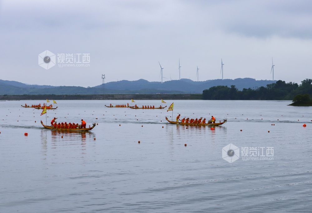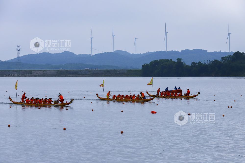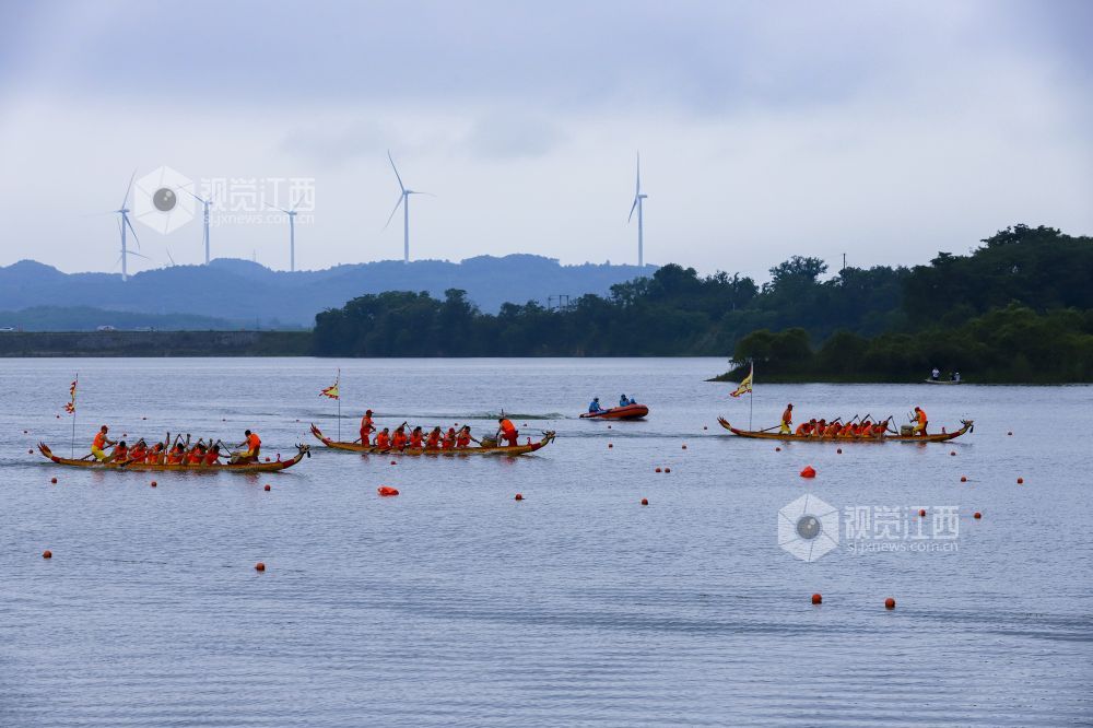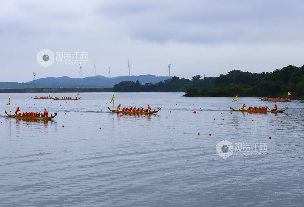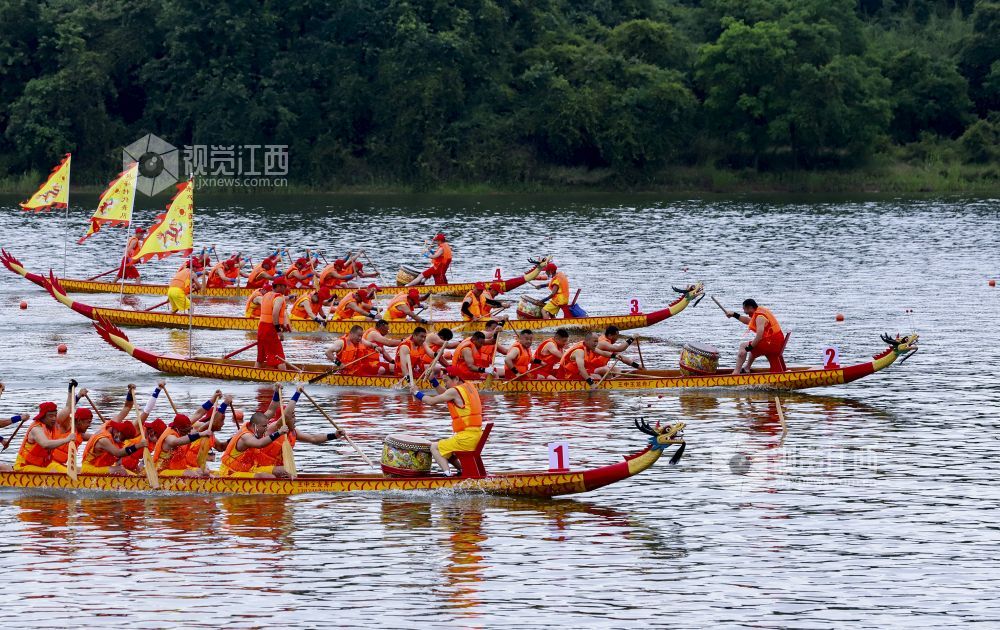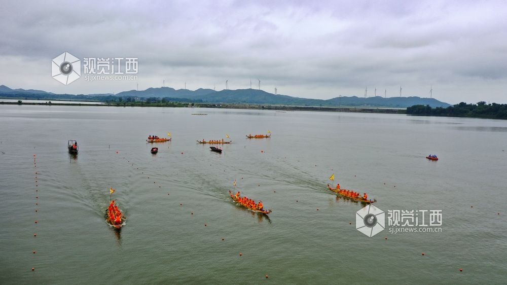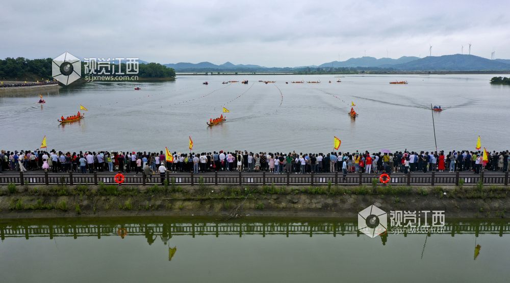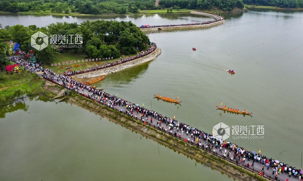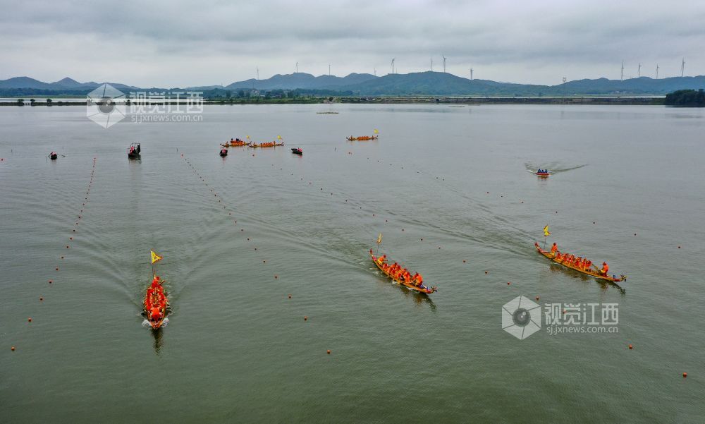 2022年6月2日,江西省九江市湖口县正在鄱阳湖畔舜德乡举行赛龙舟活动。