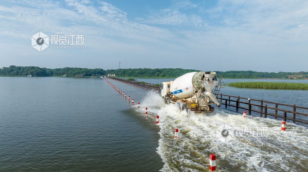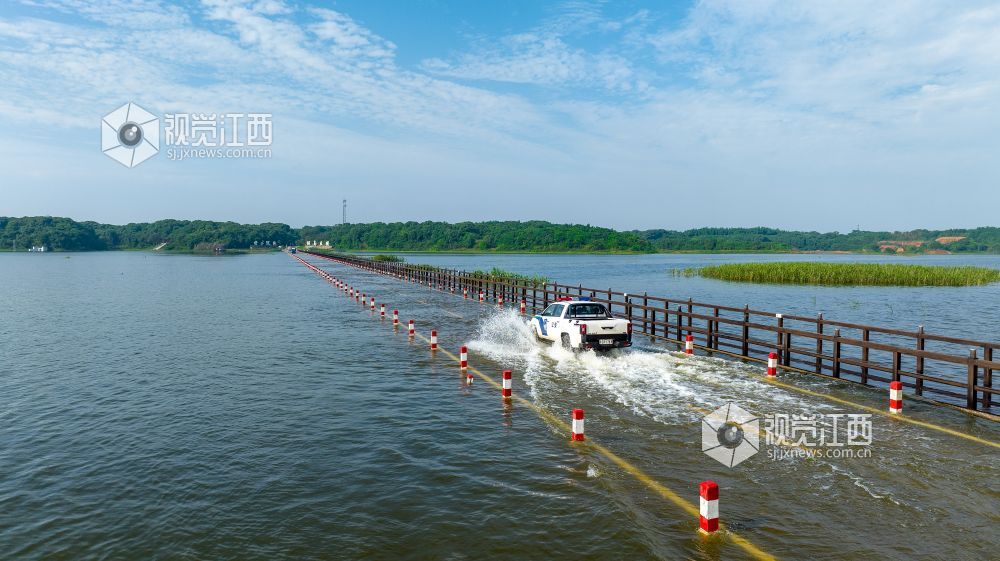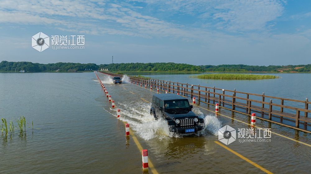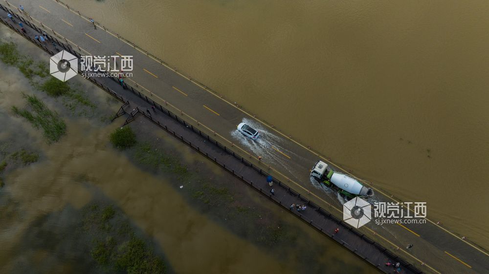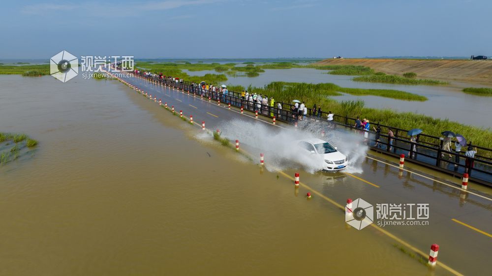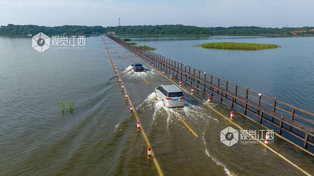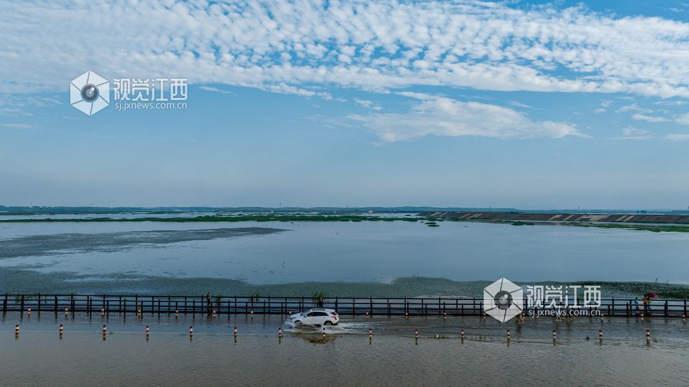 受持续降雨影响,2022年6月6日,江西省水文检测站显示星子站9时水位18.15米,江西省九江市永修县永吴公路再现水上公路景观,引无数游人观赏。
