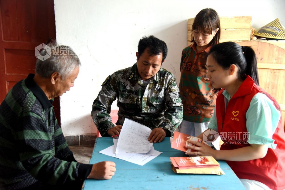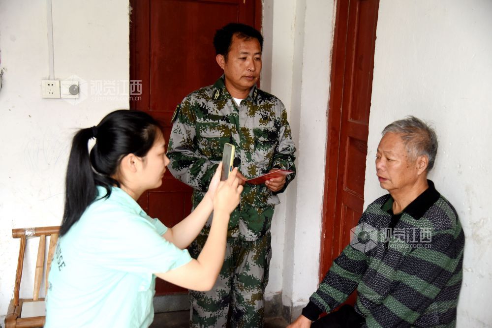 2022年6月8日,江西省抚州市南丰县傅坊乡退役军人服务站工作人员和退役军人志愿者来到傅坊村退役军人付毛牙家中,上门为他提供照相、采集、登记、录入等“一站式”服务,打通为退役军人服务的“最后一公里”。