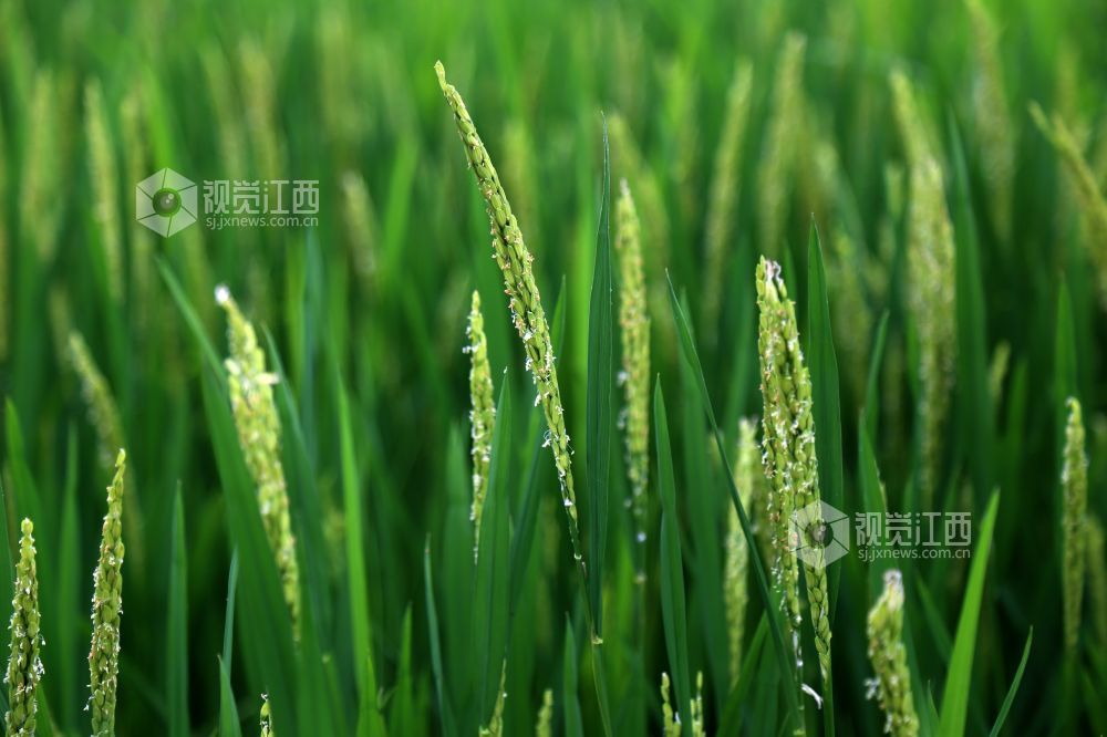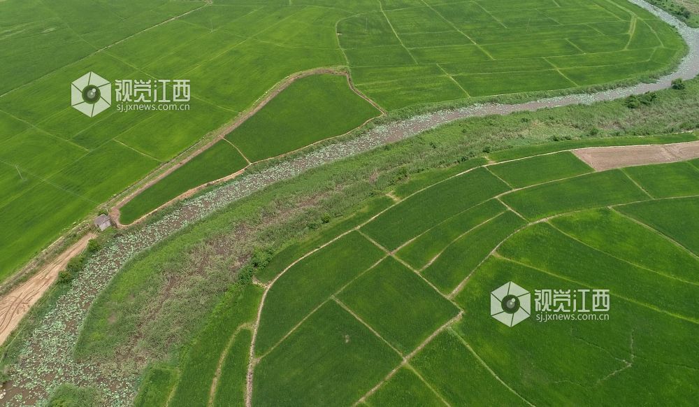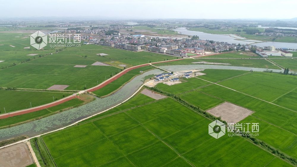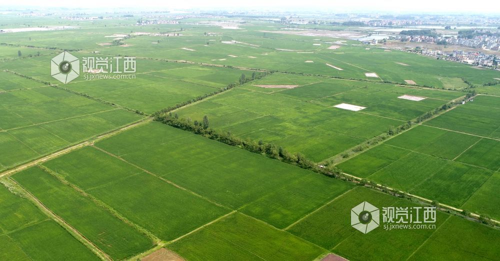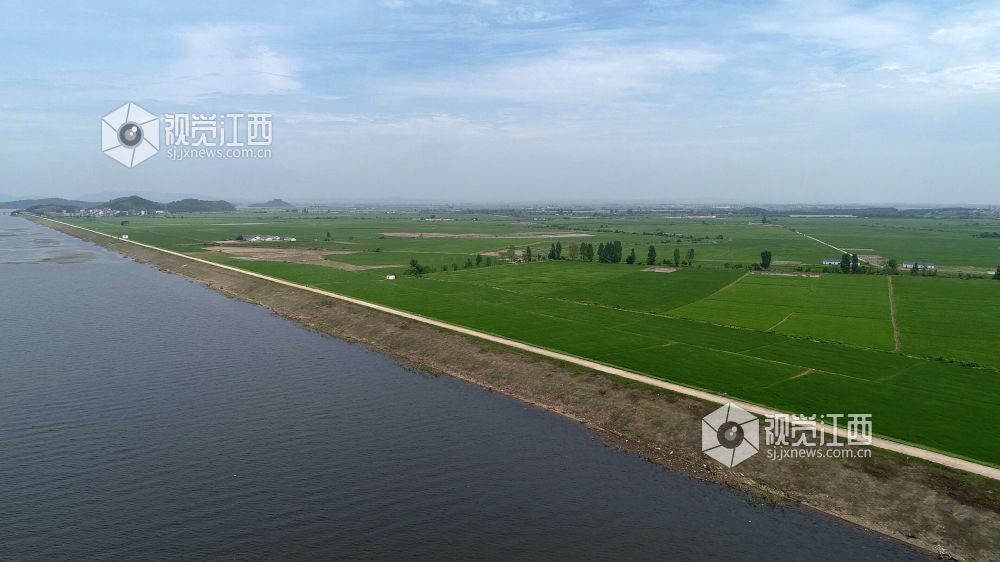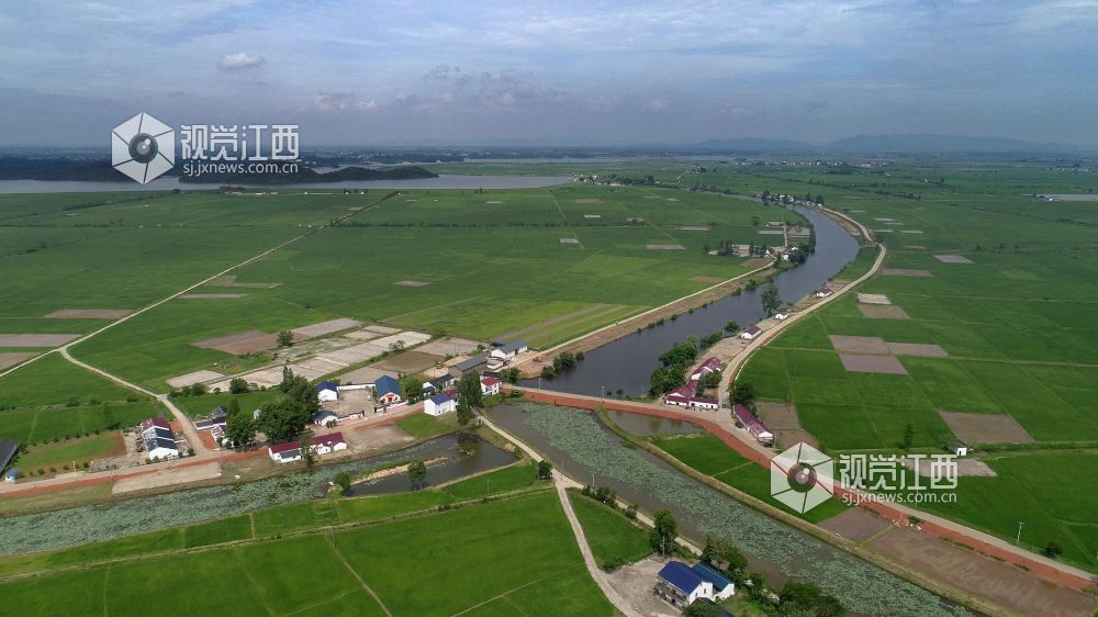 盛夏时节,在俗有“江南粮仓”美誉的鄱阳县鸦鹊湖到处都是绿油油的一片,万亩良田碧浪翻滚,稻穗放花,香气迷人。远处的鄱阳湖正值丰水期,烟波浩渺、一望无际、水天一色,与绿色的稻田交相呼应,美不胜收。